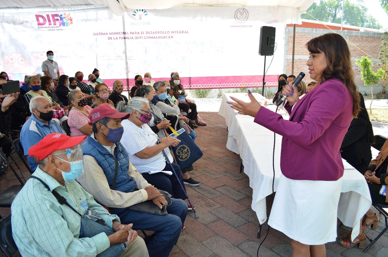 La Presidenta de Chimalhuacán, Xóchitl Flores Jiménez, entregó a adultos mayores aparatos funcionales como sillas de ruedas, bastones y andaderas, como resultado de las gestiones realizadas por el Sistema Municipal para el Desarrollo Integral de la Familia (DIF) de Chimalhuacán, ante su similar estatal.