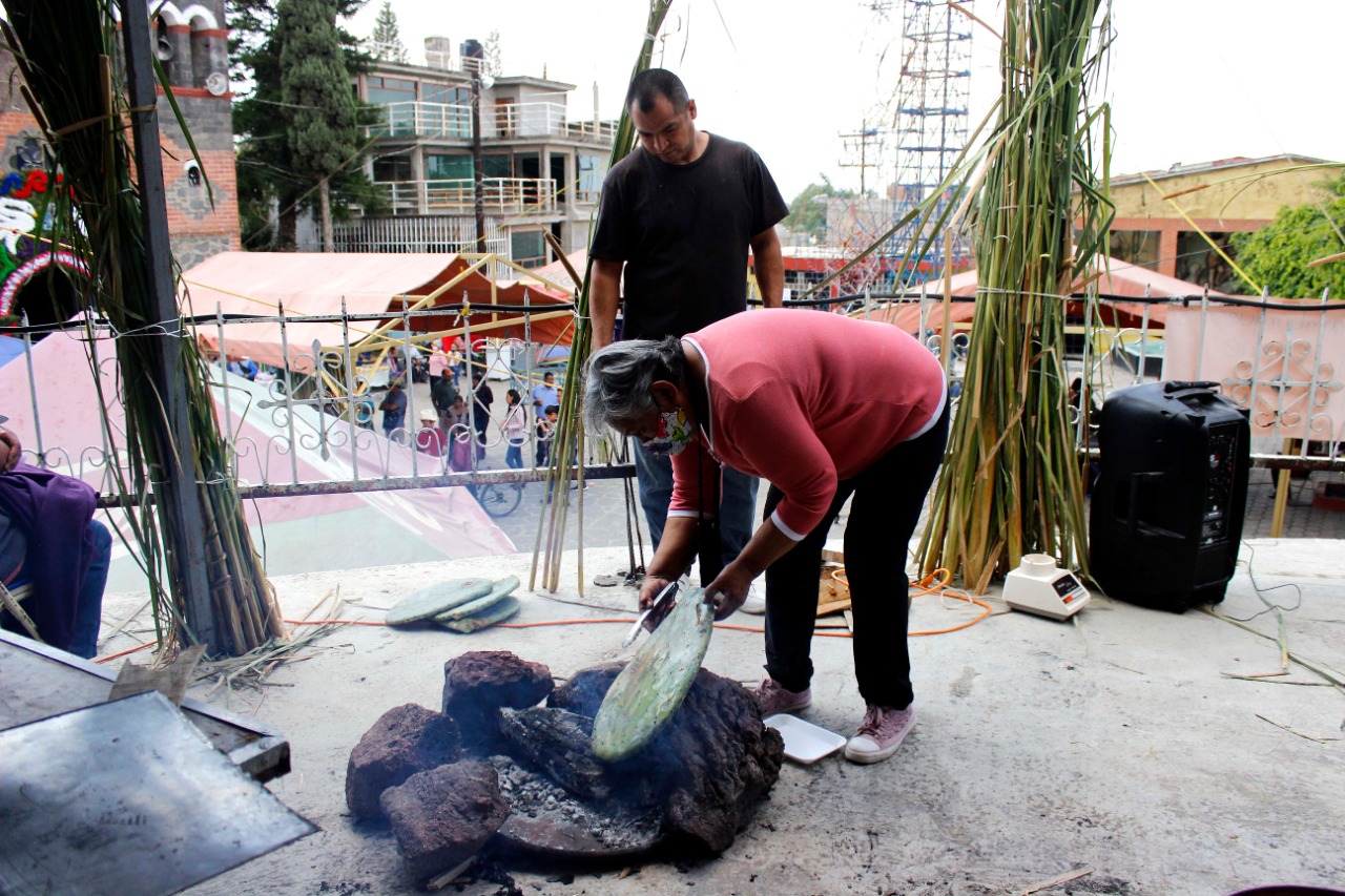 Este evento, realizado en el atrio de la Capilla de San Juan, ofreció productos elaborados a partir de la piel de conejo, plantas medicinales, suculentas, quesos, así como comida tradicional de Chimalhuacán, como ahuautle, mixmole o nopal.