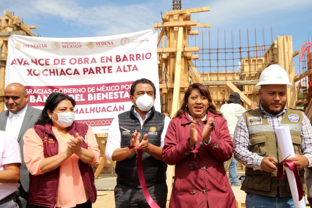 La Presidenta Municipal de Chimalhuacán, Xóchitl Flores Jiménez, y el Delegado Regional de los Programas del Bienestar, Vladimir Hernández Villegas, dieron el banderazo para la construcción de dos bancos del Bienestar en el municipio, uno en el Barrio Transportistas y otro en el Barrio Xochiaca parte alta, y que estarán listos a mediados de septiembre, en beneficio de las personas que están inscritas en algún programa social y pensionados, quienes podrán cobrar mediante tarjetas bancarias y sin intermediarios.