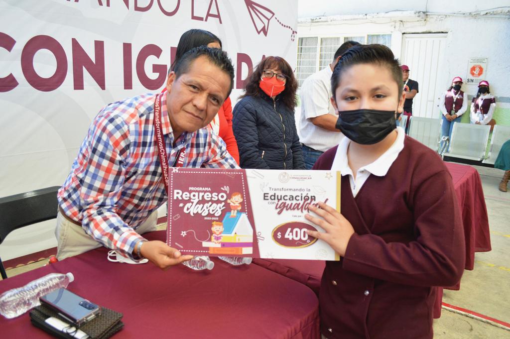 El apoyo económico del Programa de Regreso a Clases “Transformando la Educación con Igualdad”, fue entregado por personal de las direcciones de Educación y de Bienestar, de manera simultánea, en decenas de primarias y secundarias públicas a miles de estudiantes. “Como gobierno, seguiremos impulsando programas que impacten de manera positiva el bienestar de las familias chimalhuaquenses”, finalizó la Alcaldesa Flores Jiménez.