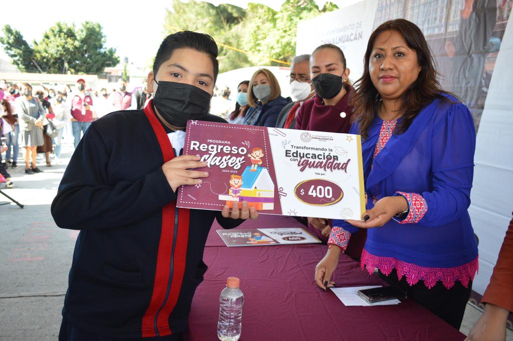 Los padres de familia de estudiantes del turno vespertino, dónde la institución lleva el nombre de “Tenochtitlan”, también recibieron el apoyo económico directo.