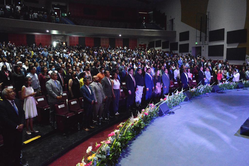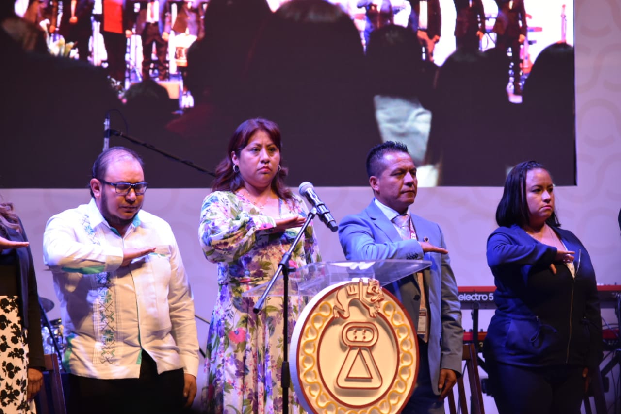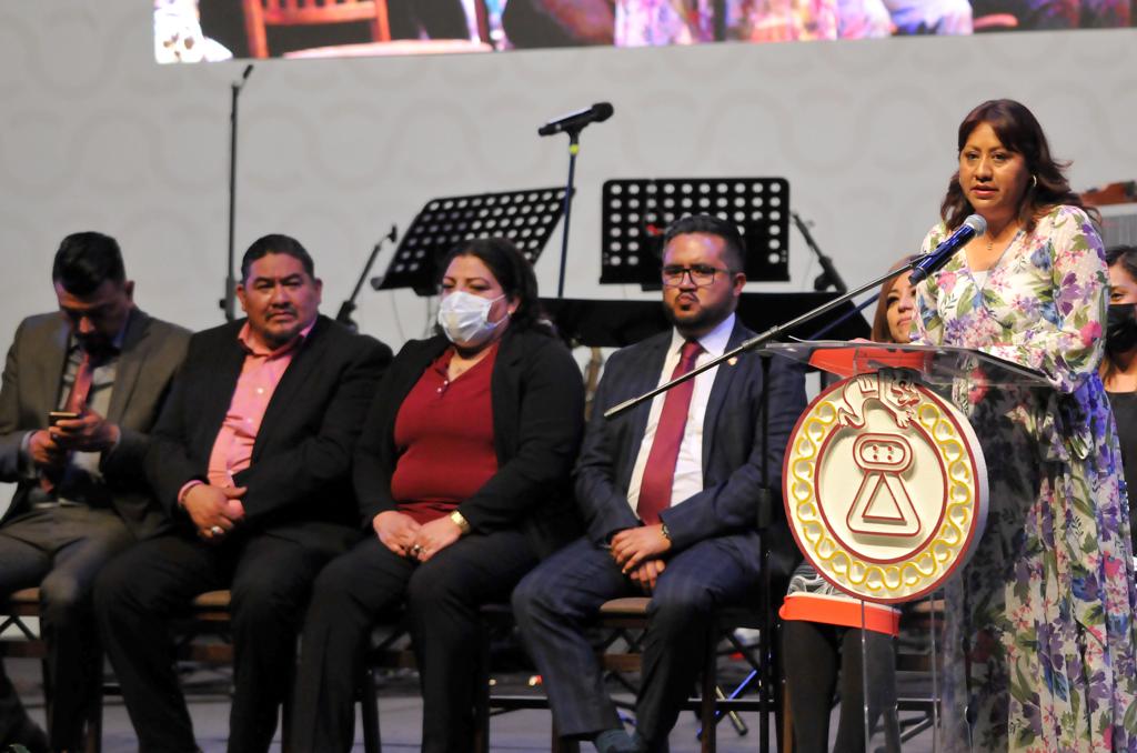 En el Teatro Auditorio “Acolmixtli Nezahualcóyotl”, que se vistió de gala para recibir a miembros del H. Cabildo, invitados especiales y público en general, la Alcaldesa Flores Jiménez expresó que es momento “de reencontrarnos con la historia y reafirmar el sentido de pertenencia, recordar que somos un pueblo de manos artesanas, campesinas, obreras, canteras, y mujeres trabajadoras, orgullosos de sus festividades y tradiciones”.