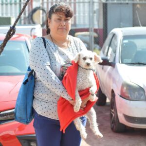 Francisca Á. J., de la colonia Apapasco, acudió a esterilizar a sus perritas “Yuli” y “Venus”, ya que no desea que tengan descendencia, pues consideró que hay muchos perros en las calles y eso puede ser un problema de salud, por las heces que dejan al aire libre. Asimismo, agradeció al Gobierno Municipal por realizar estas campañas de esterilización gratuitas.