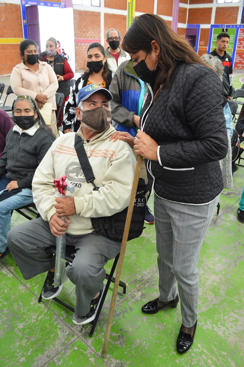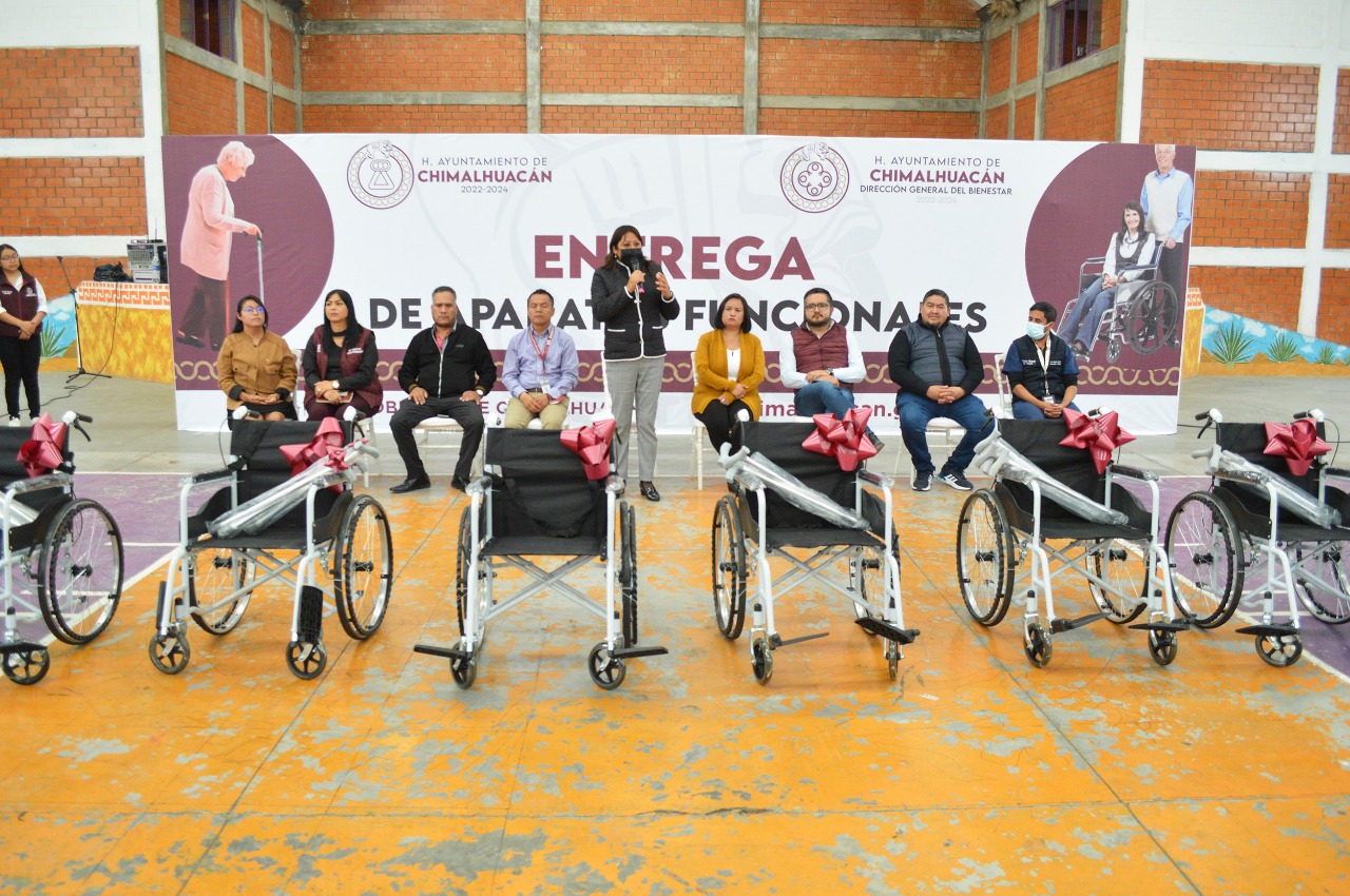 La Presidenta Municipal de Chimalhuacán, Xóchitl Flores Jiménez, este día entregó más de 50 aparatos funcionales a adultos mayores y personas con capacidades diferentes, como parte de las acciones a favor de los grupos vulnerables, canalizados por la Dirección General de Bienestar y el Sistema Municipal para el Desarrollo Integral de la Familia (DIF).