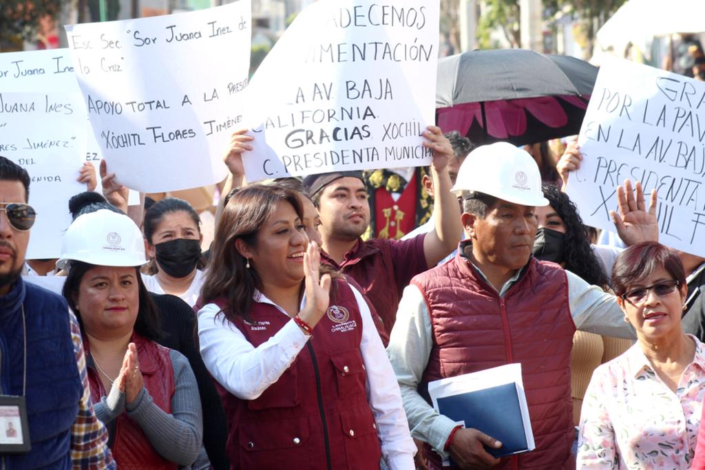 En Villa San Agustín, uno de los barrios más antiguos de Chimalhuacán, la Presidenta Municipal, Xóchitl Flores Jiménez entregó una obra de pavimento asfáltico en la Avenida Baja California, en el tramo que comprende de la calle Chiapas a Amapola, que beneficiará a 9 mil 600 personas.