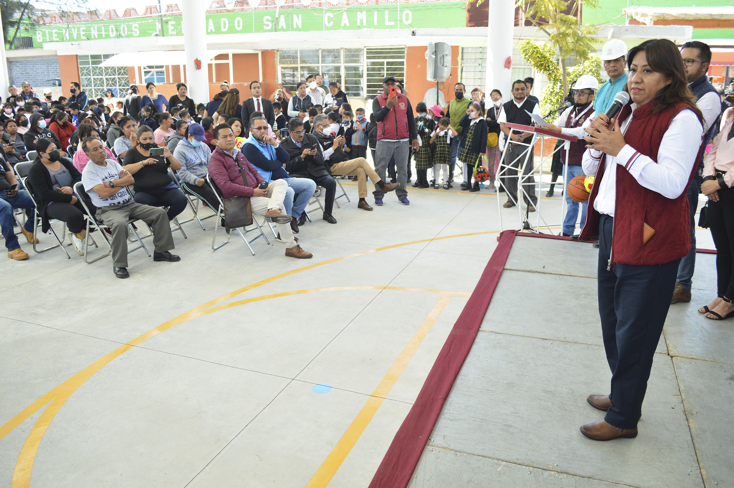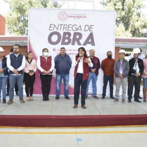 En representación de los padres de familia, María Inés Huerta Flores agradeció a la Presidenta Municipal por la realización de la obra: “Los niños están muy contentos, ya pueden tomar sus clases de educación física protegidos del clima”.