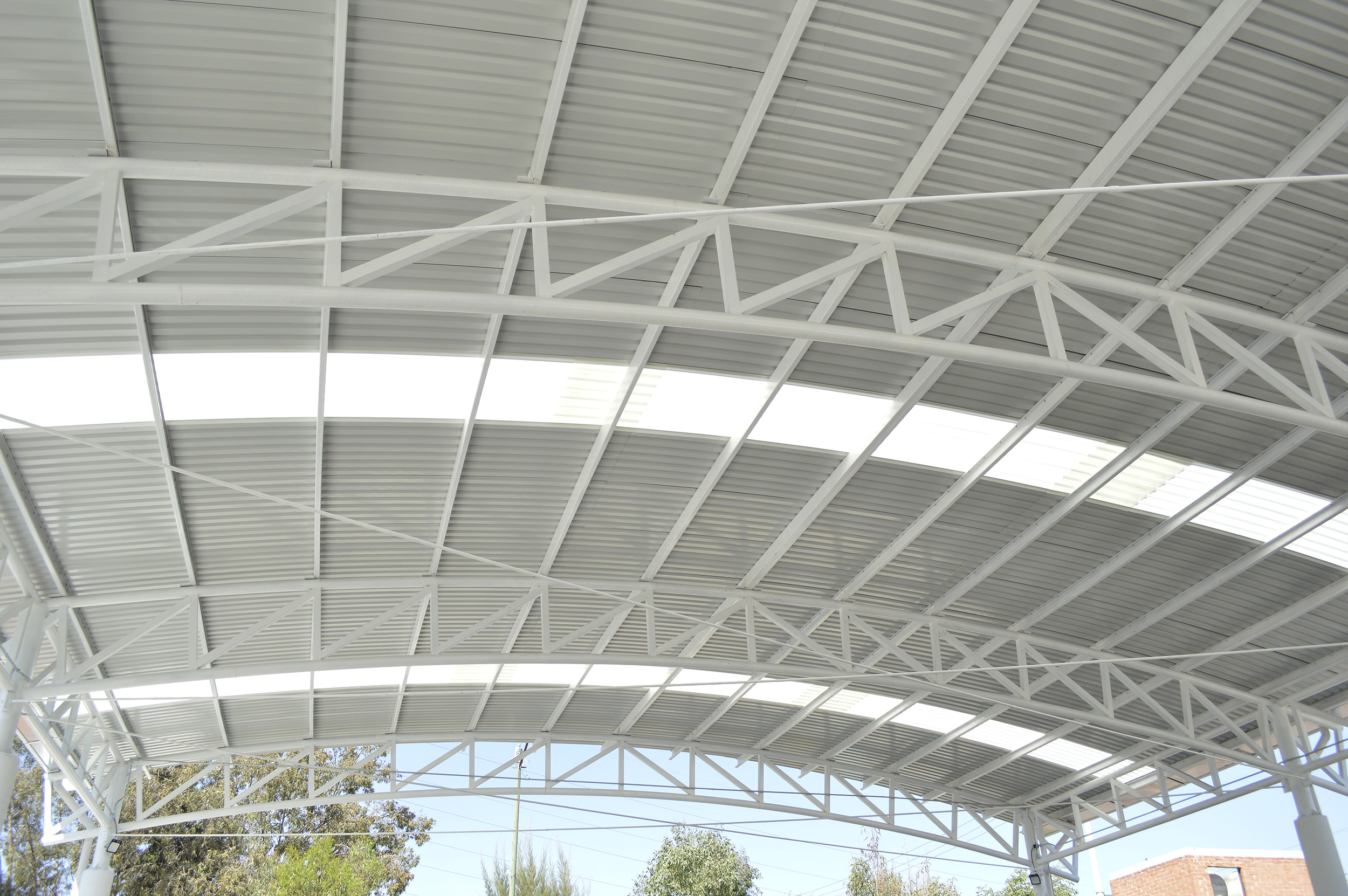 Añadió que este techado cuenta con 10 bajadas pluviales de PVC y la construcción de diez registros para drenaje. Dentro de la estructura, se colocaron tableros de basquetbol y portería para fútbol, así como iluminación. Con esta obra resultaron beneficiados 500 alumnos de ambos turnos, destacó.