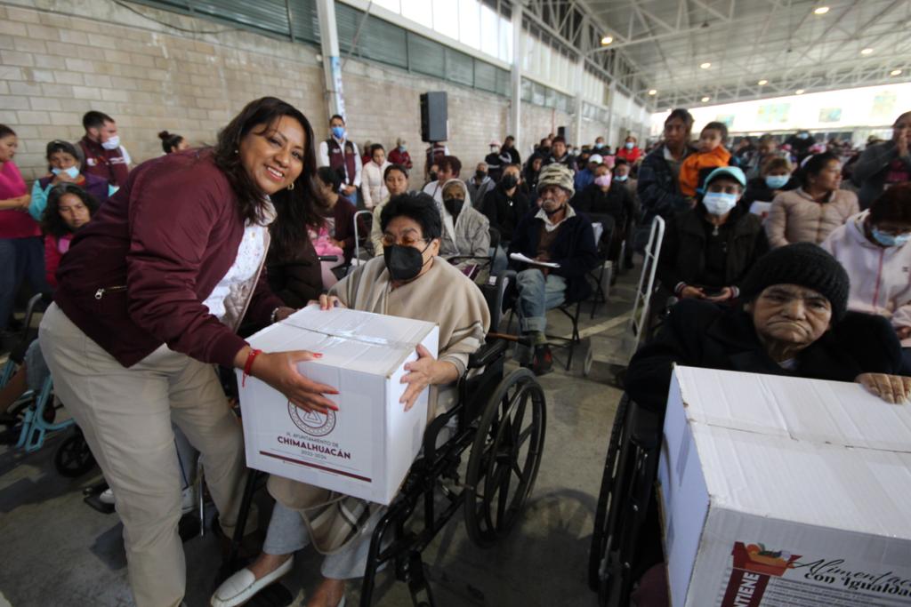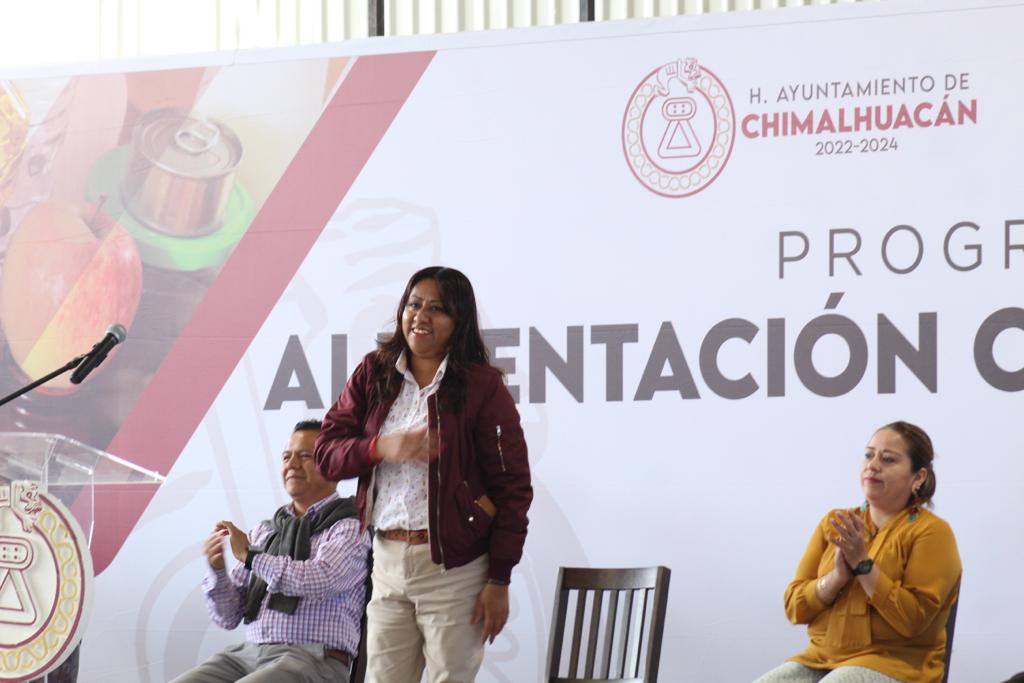 Al continuar con la entrega de canasta alimentaria a familias que más lo necesitan, como parte del programa municipal “Alimentación con Igualdad”, la Presidenta Municipal de Chimalhuacán, Xóchitl Flores Jiménez, dijo que se está trabajando para ser un solo Chimalhuacán, con un solo proyecto y en favor de la población. “Vamos a trabajar el doble para cambiar la imagen de nuestro municipio”, enfatizó.