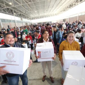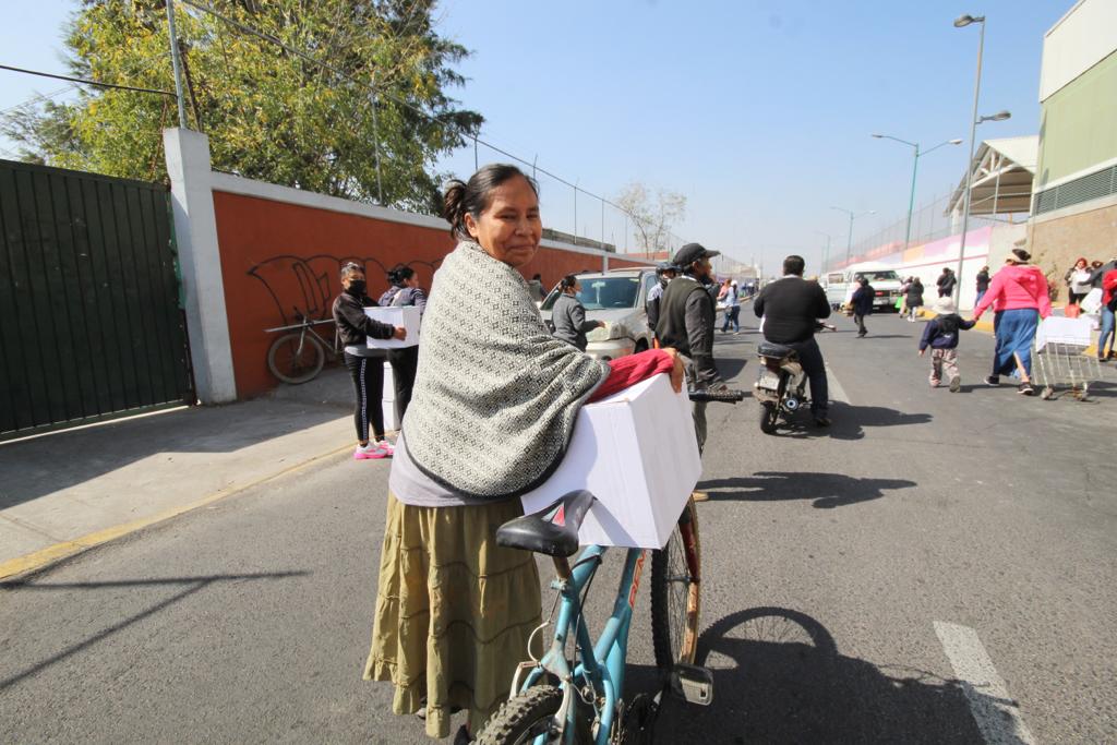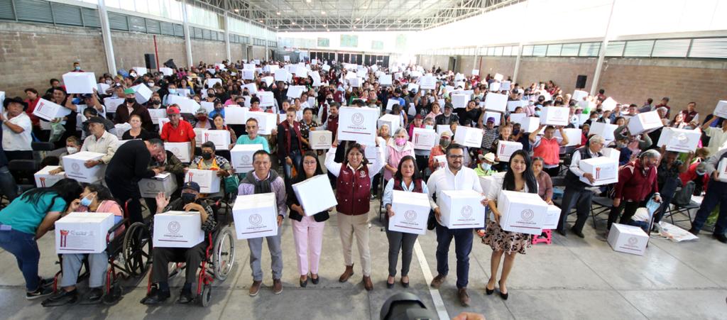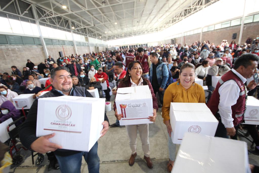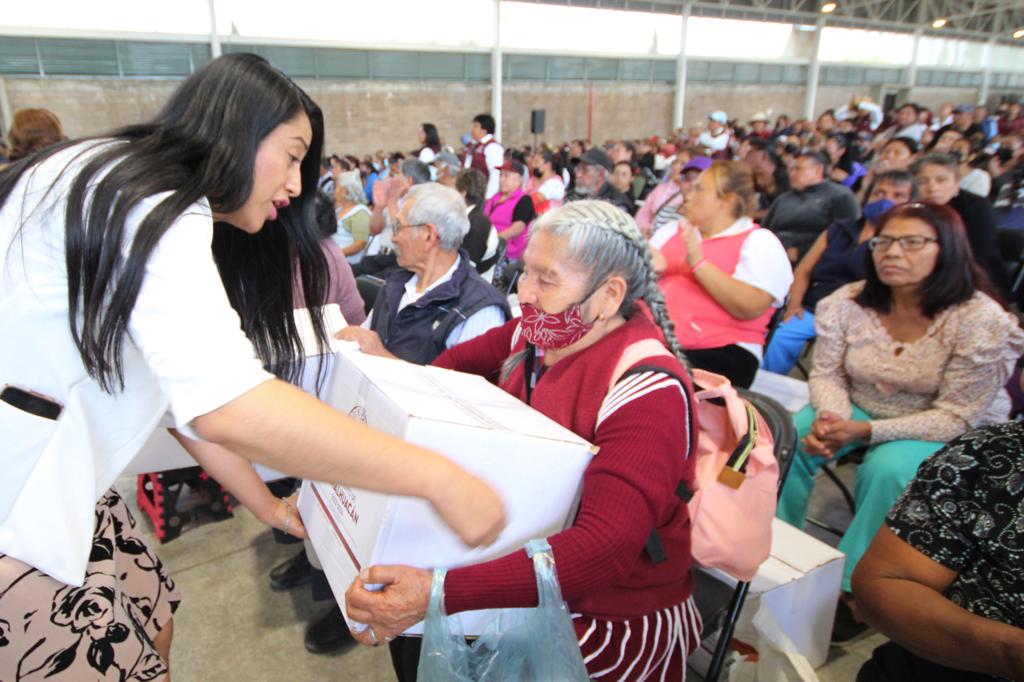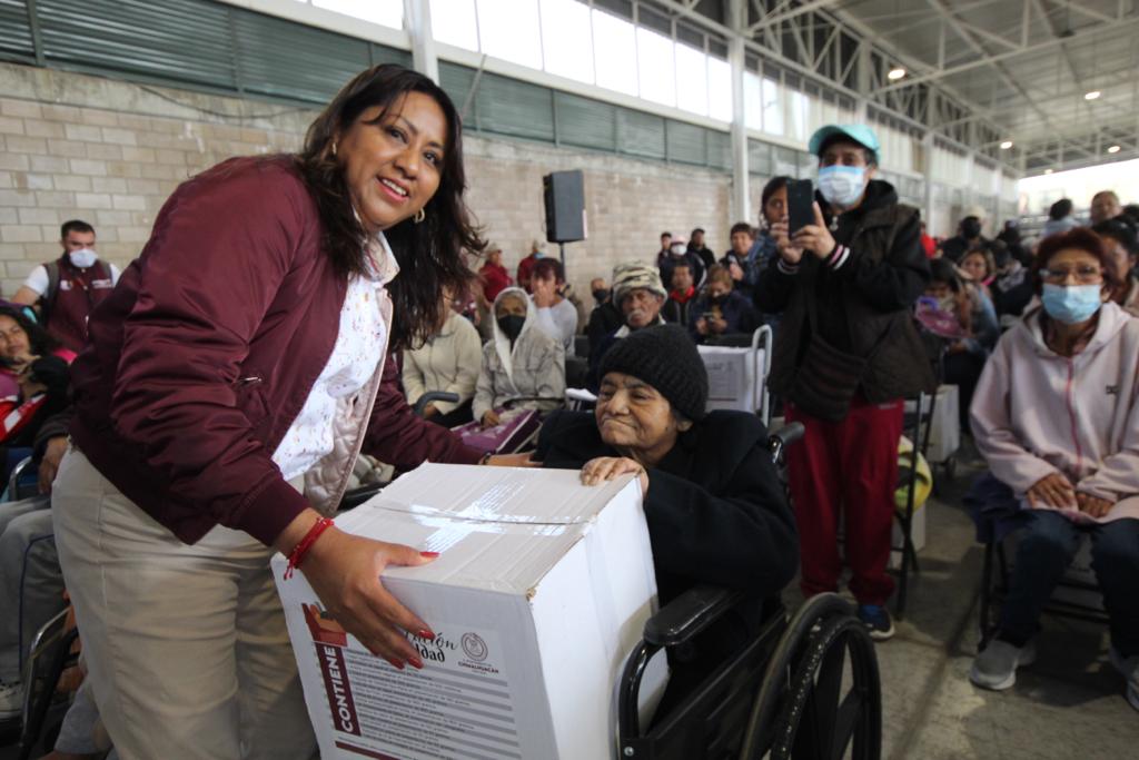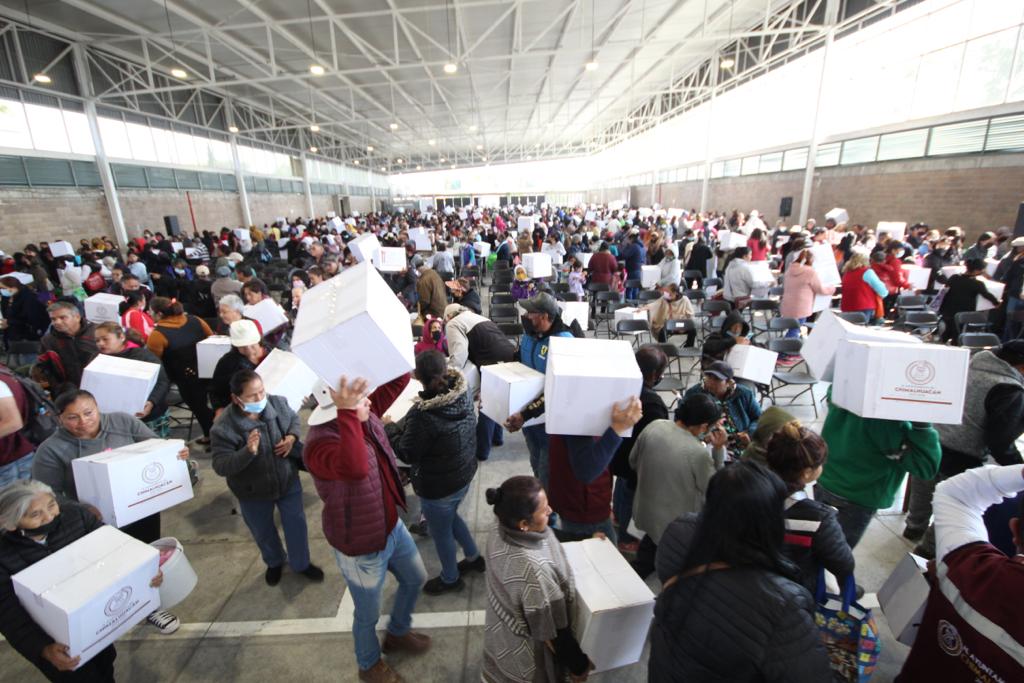Por la tarde, la Presidenta Municipal, Xóchitl Flores Jiménez, hizo una segunda entrega de canastas básicas a familias que también se reunieron en el Auditorio de Usos Múltiples, de Tlatel Xochitenco.