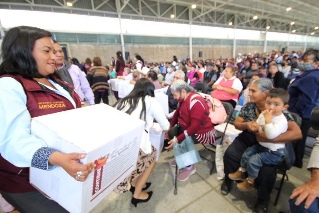 En el Auditorio de Usos Múltiples, del Barrio Tlatel Xochitenco, donde se congregaron más de mil personas de los barrios Vidrieros, Alfareros, Tejedores, Curtidores, Saraperos, Plateros, Herreros y la colonia Arturo Montiel, entre otros, Flores Jiménez destacó que la canasta básica que hoy se entrega, fue aprobada en diciembre pasado por el Cabildo Municipal, y se decidió que comenzara su entrega este mes con una cobertura de 10 mil beneficiarios.