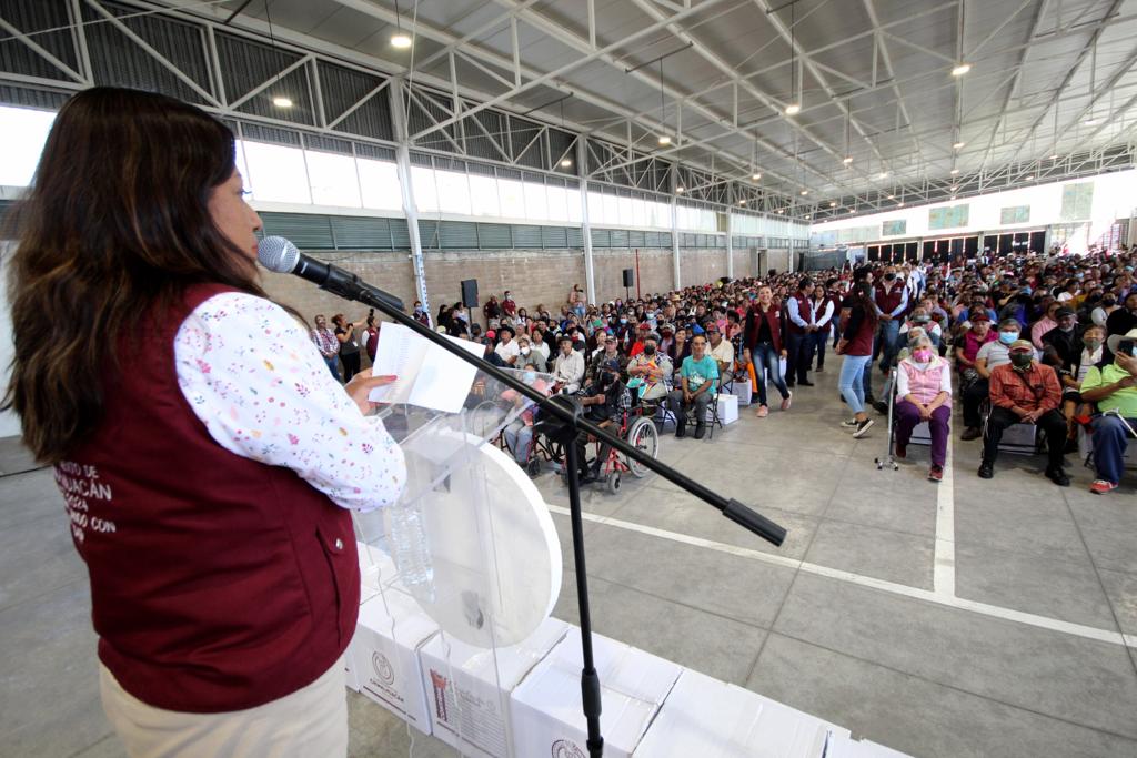 “Estamos analizando incrementar el número de beneficiarios porque hay lista de espera, lo que sí les puedo comentar es que estaremos entregándola cada tres meses”, enfatizó la Alcaldesa de Chimalhuacán. Aquí también numeró las principales acciones de su administración a favor de la población, como los programas “Transformando la Educación con Igualdad”, “Entrega de Obras Públicas”, “Alimentación con Igualdad” y “Jornadas Médicas y de Esterilización”.