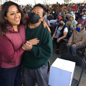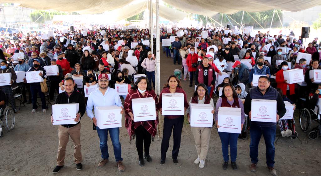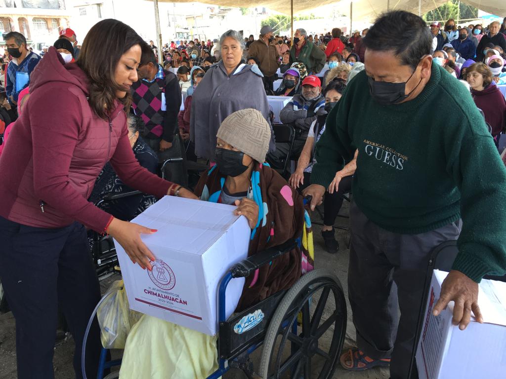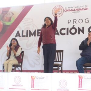 Destacó que el programa municipal “Alimentación con Igualdad” se destinó a más de 10 mil familias de Chimalhuacán, las cuales recibieron una despensa con 17 artículos de primera necesidad y, a diferencia de lo que ocurría en el pasado donde los apoyos se entregaban solo a unos cuantos, “ahora la ayuda va dirigida a la población más vulnerable, sin distinción”.