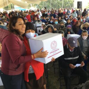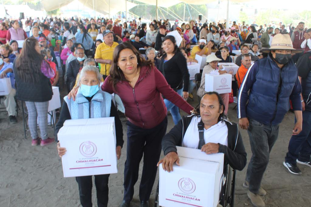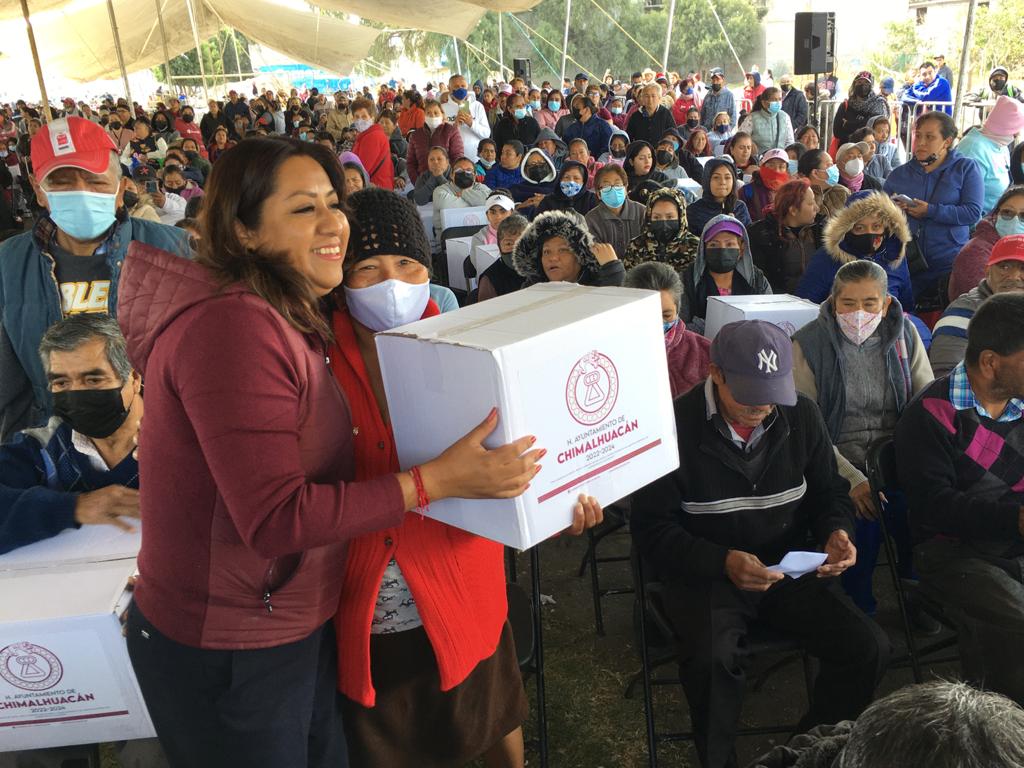 Durante la última etapa de entrega de la canasta básica del programa municipal “Alimentación con Igualdad”, la Presidenta Municipal de Chimalhuacán, Xóchitl Flores Jiménez, dijo que su administración trabaja “en la consolidación de un gobierno del pueblo y para el pueblo, de un municipio libre que va de la mano de la gente, y a la que no hay que fallarle”.