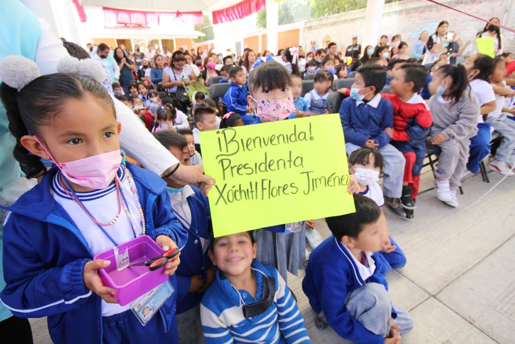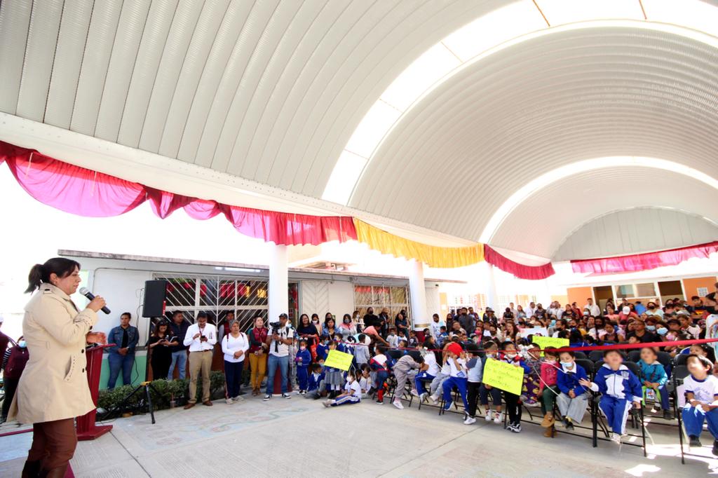 Al entregar un arcotecho en el Jardín de Niños “Niños Héroes”, de la Colonia Tequesquinahuac, la Presidenta Municipal de Chimalhuacán, Xóchitl Flores Jiménez, afirmó que en el tema educativo su administración continuará apoyando a las familias, “sin colores partidistas”, y se atenderán todos los centros educativos del municipio, sobre todo, aquellas escuelas que por años estuvieron en el abandono.