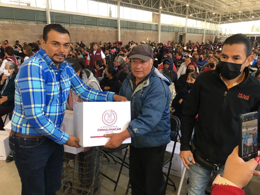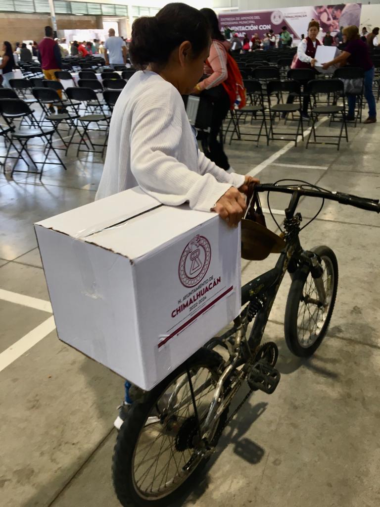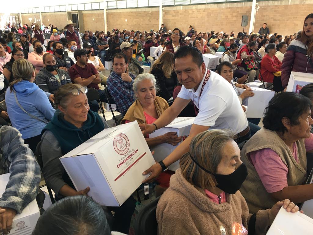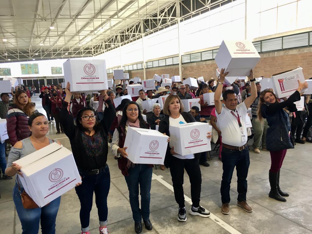 La Presidenta Municipal de Chimalhuacán, Xóchitl Flores Jiménez, entregó canastas alimentarias a familias de la parte baja del municipio, como parte del programa municipal “Alimentación con Igualdad”, que beneficia directamente a más 10 mil familias chimalhuaquenses.