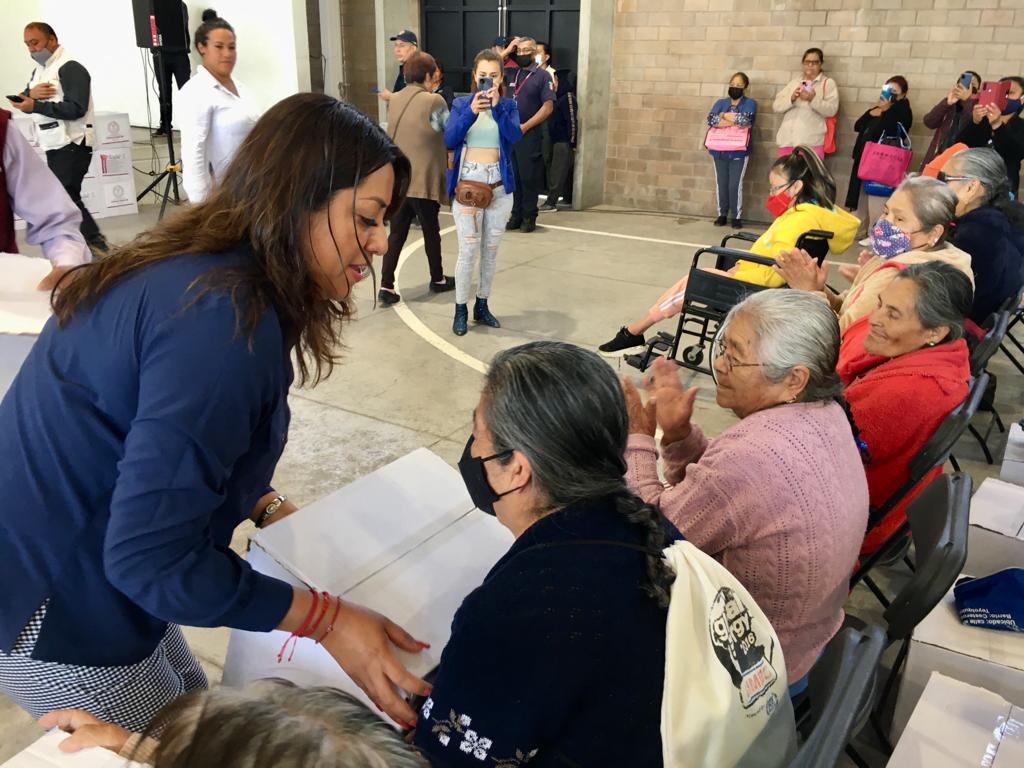 En el Salón de Usos Múltiples Tlatel Xochitenco, durante la primera entrega de canastas alimentarias del día, la Alcaldesa Flores Jiménez dijo que su administración sigue redoblando esfuerzos para lograr salir adelante como municipio, y hoy se está invirtiendo en salud, obras, seguridad y apoyos para las personas que más lo necesitan.