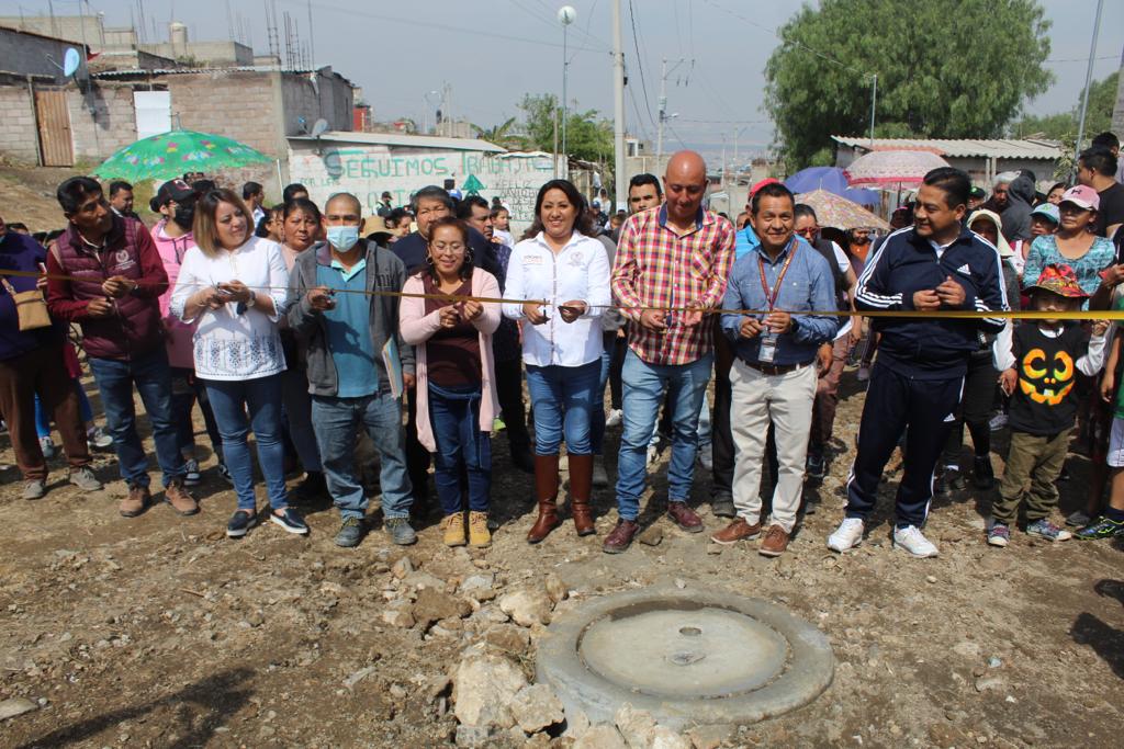 Jiménez, entregó una obra de introducción de drenaje sanitario en las calles Eje de la