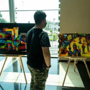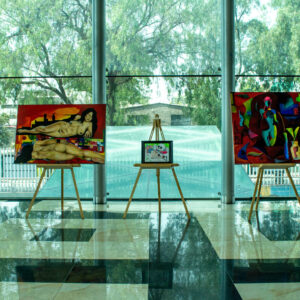 La exhibición, instalada en el lobby del teatro, aborda la temática del desnudo femenino, el surrealismo, la abstracción, la escultura en piedra y la caricatura, así como temáticas sociales y contextos actuales de la vida común.