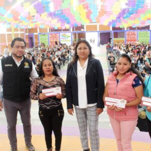 En esta ocasión, la Alcaldesa Flores Jiménez y el Director Regional de Programas para el Desarrollo entregaron apoyos para mejora de escuelas a las señoras María de la Paz S., de la Primaria “15 de Septiembre”; Catalina Cruz L., de la Primaria “Calmécac” y Claudia Romero S., de la escuela “Elena Díaz Lombardo”.