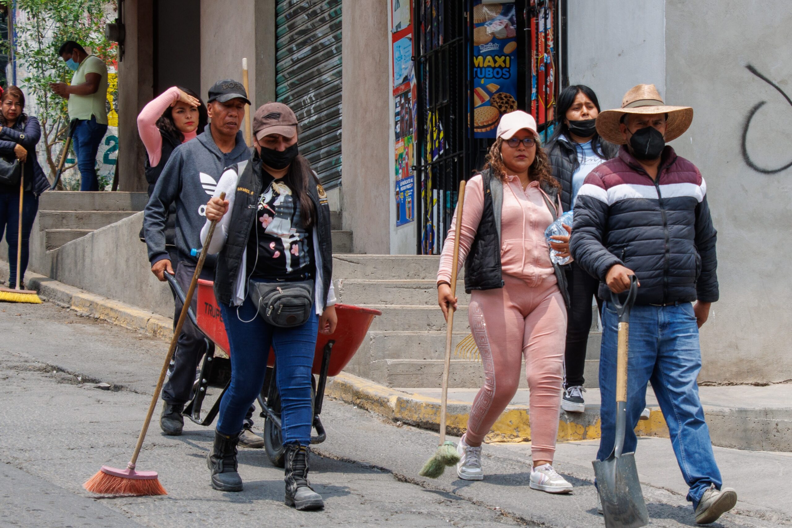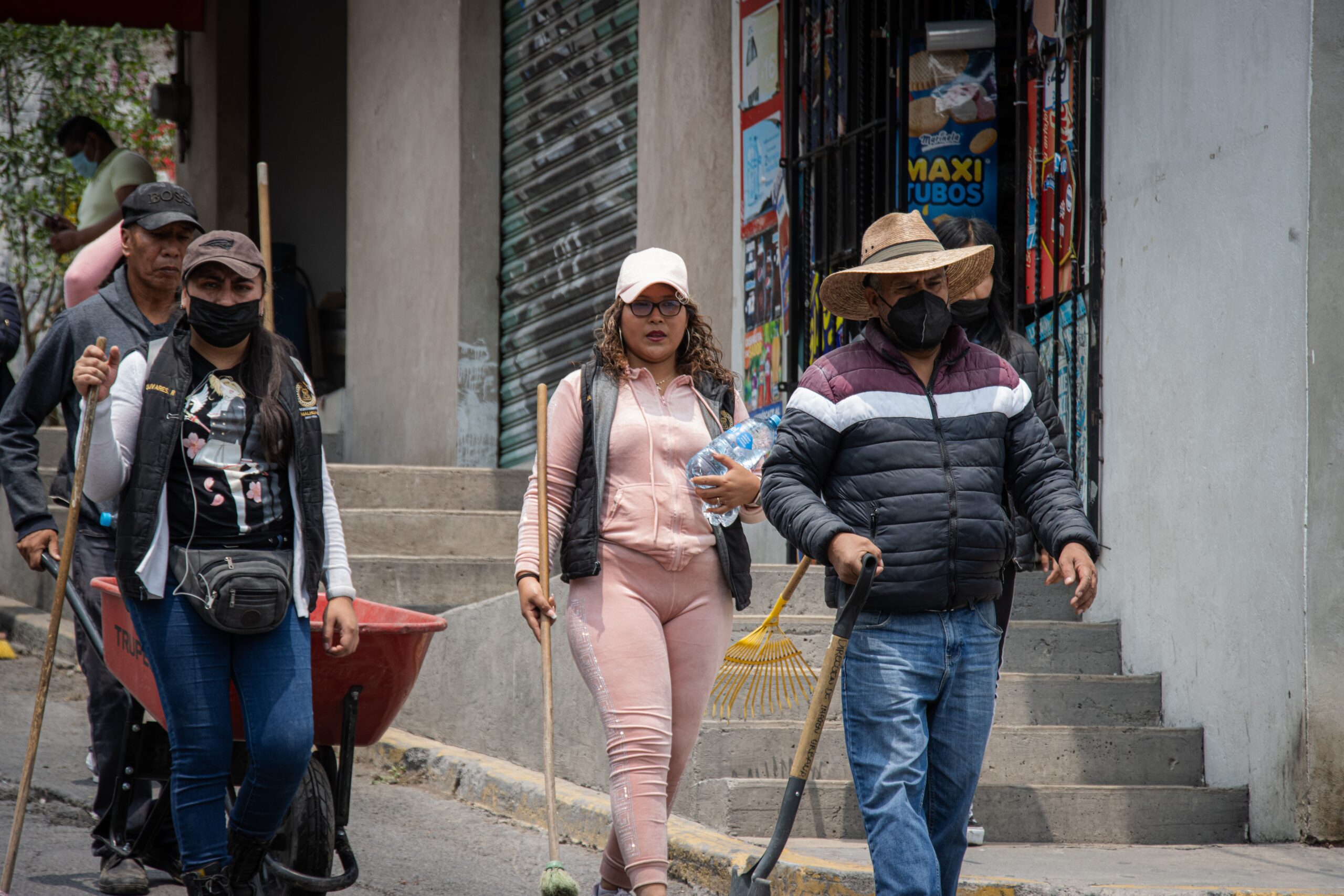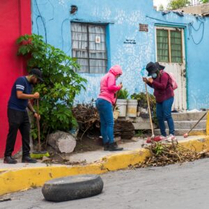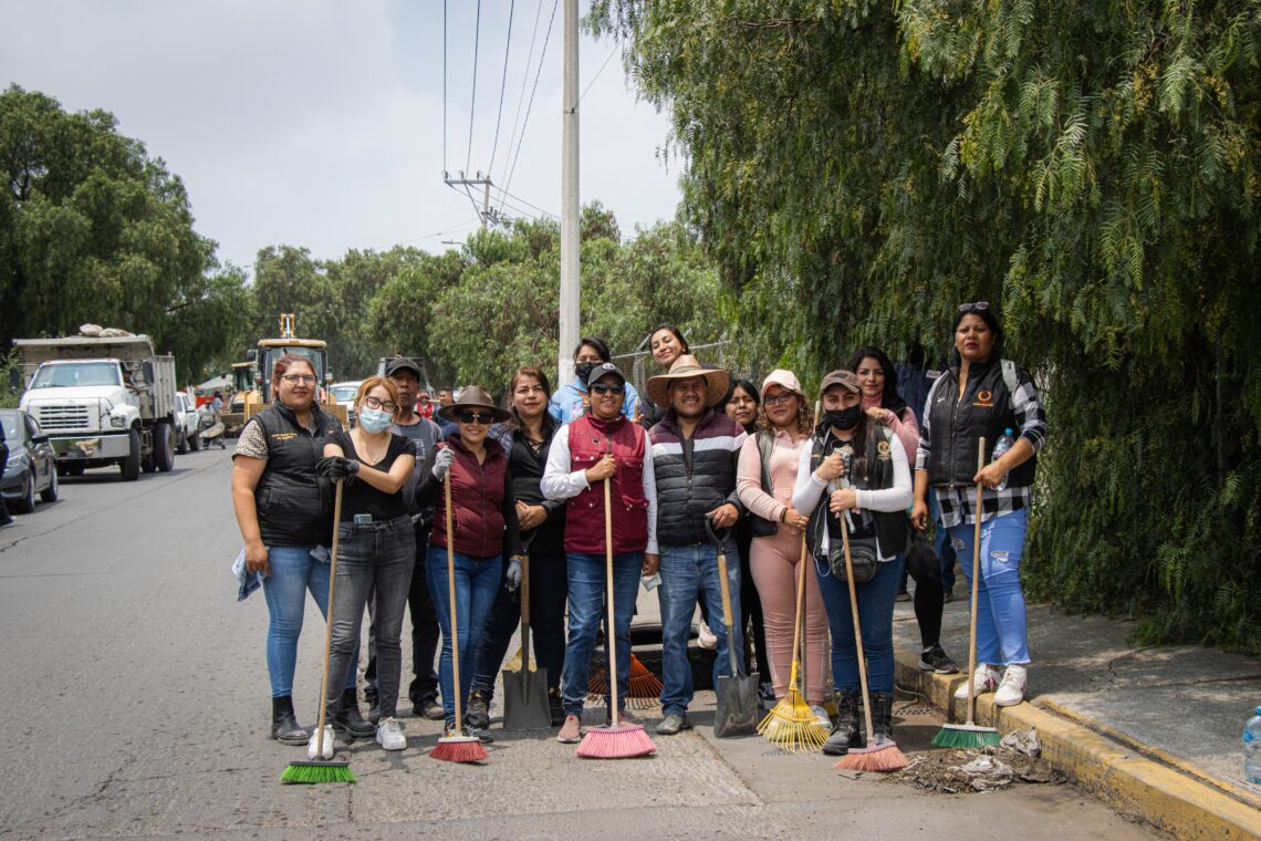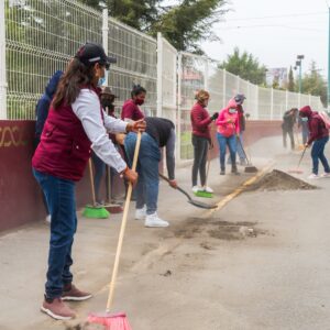 Con herramientas de limpieza en mano, la Alcaldesa encabezó la jornada barriendo, retirando escombro, basura y piedras, así como carteles en postes. Hicieron lo propio la Cuarta Regiduría encabezada por Adán Vargas Santiago, el personal de la Dirección de Servicios Públicos, de Imagen Urbana y de Presidencia, mientras que el personal de Servicios Públicos, con maquinaria, retiró escombro sobre la avenida Pirules, así como hierba que afectaba el paso peatonal.