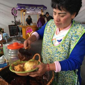 En este último fin de semana en el que se efectuará la Expo-venta, coordinada por la Dirección de Turismo y la Séptima Regiduría, la Presidenta Xóchitl Flores se dio cita para consumir exquisitos platillos de la gastronomía local de Chimalhuacán y adquirir artesanías realizadas por maestros canteros del municipio.