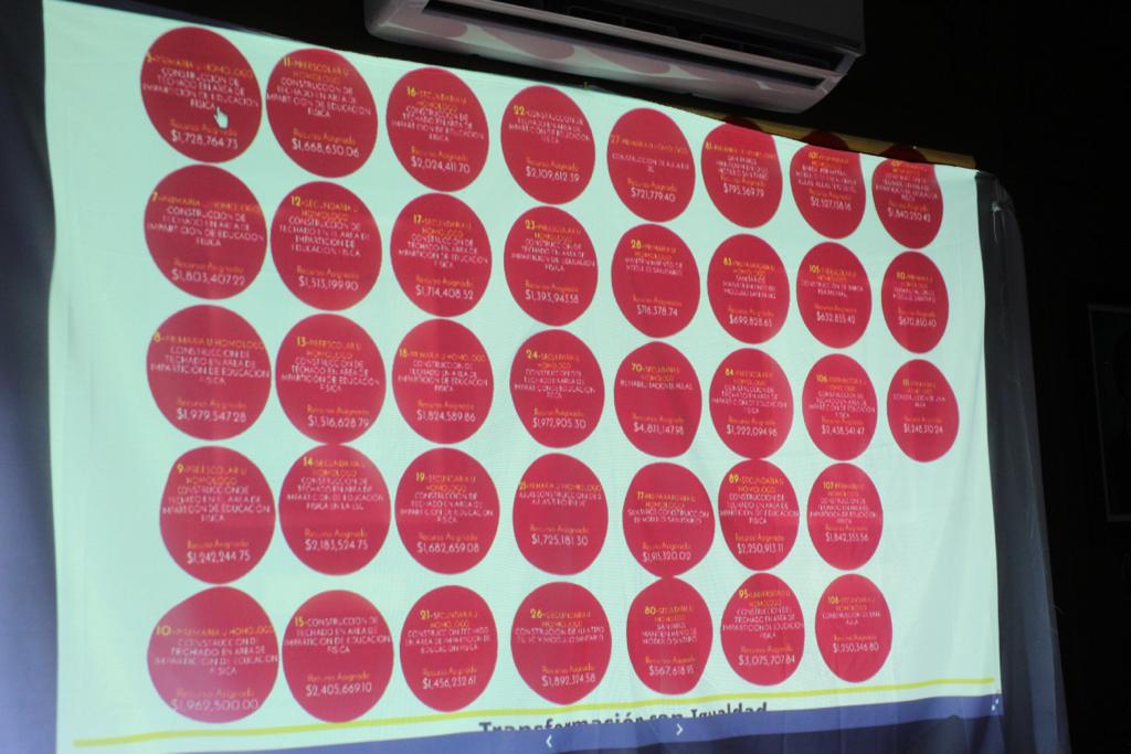 En el rubro de educación, se contempló la construcción de techados en el área de impartición de Educación Física de diversos preescolares, primarias, secundarias, preparatorias y una universidad, así como la construcción, mantenimiento o rehabilitación de módulos sanitarios, aulas y bardas perimetrales.