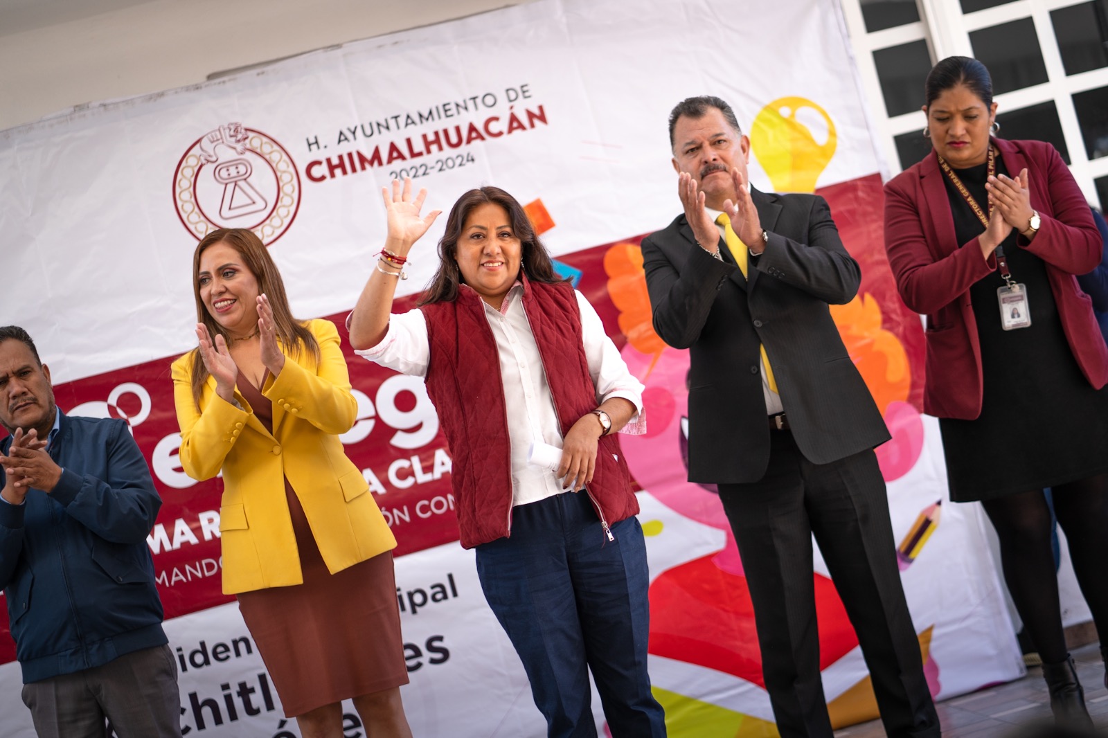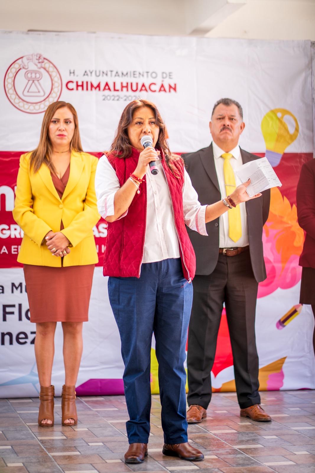 La Presidenta Municipal de Chimalhuacán, Xóchitl Flores Jiménez, hizo entrega del Programa “Regreso a Clases, Transformando la Educación con igualdad” a 851 estudiantes de la Escuela Secundaria Técnica “Prof. Silvano Animas Meraz”, en la Colonia Luis Córdoba Reyes.
