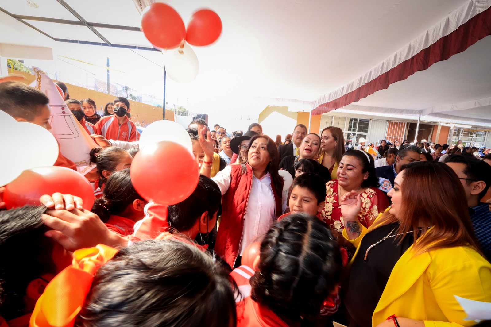 Informó que este plantel educativo próximamente contará con una techumbre, como parte de su trabajo, en beneficio de las y los estudiantes chimalhuaquenses.
