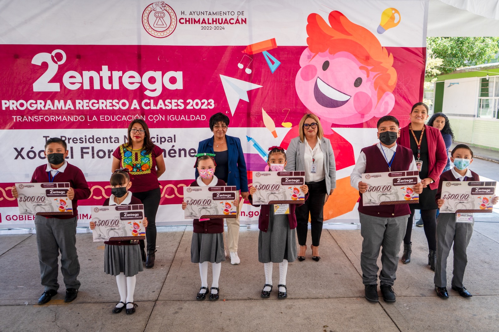 El Ayuntamiento de Chimalhuacán, bajo el liderazgo de la Alcaldesa Xóchitl Flores Jiménez, continúa fortaleciendo su compromiso con la educación en el municipio, por medio del programa “Regreso a Clases, Transformando la Educación con Igualdad 2023”, destinado a apoyar económicamente a estudiantes de nivel básico de todo el municipio.