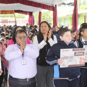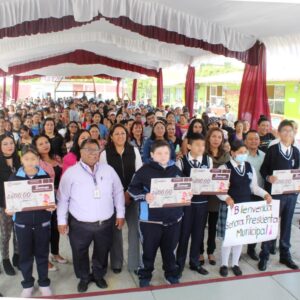 José Luis Castro Guzmán, Supervisor de la Zona Escolar S-105 –que abarca 17 escuelas como ésta– reconoció el enorme esfuerzo presupuestal que significa para las finanzas municipales el apoyo de 400 pesos para alumnos de preescolar, de 500 para los de primaria y de 600 para los de secundaria, por lo cual agradeció a nombre de directivos, madres y padres de familia, y alumnos la creación de este programa.