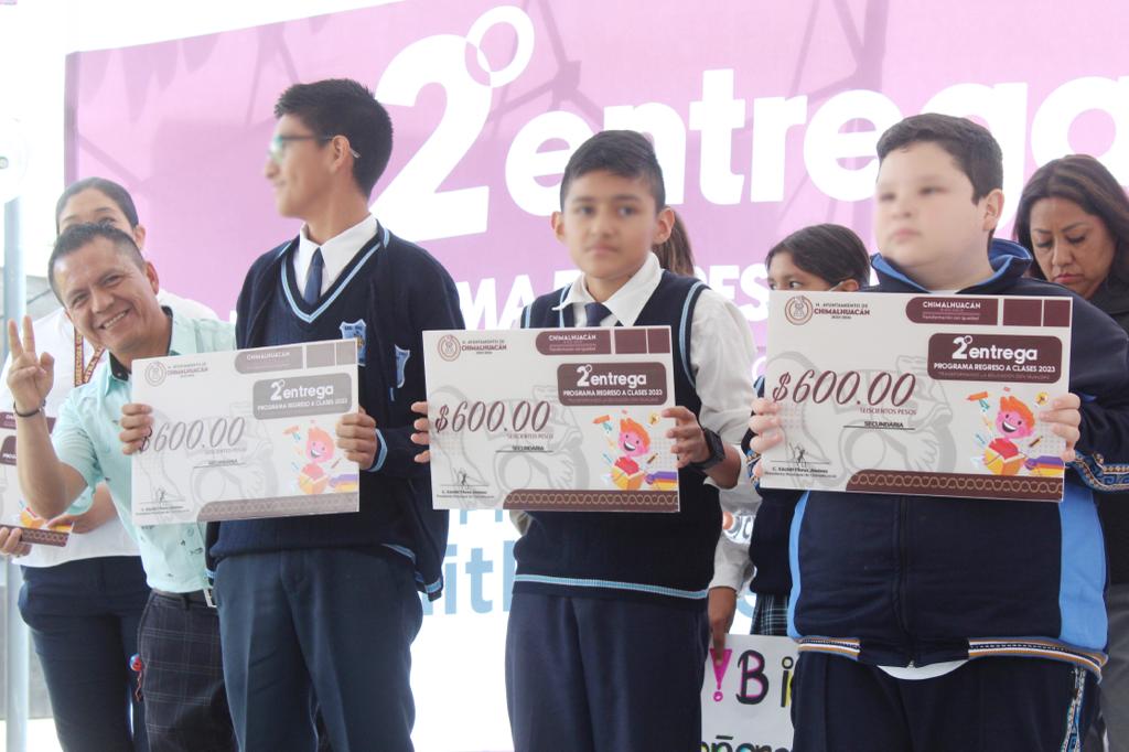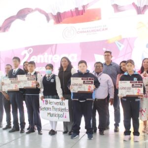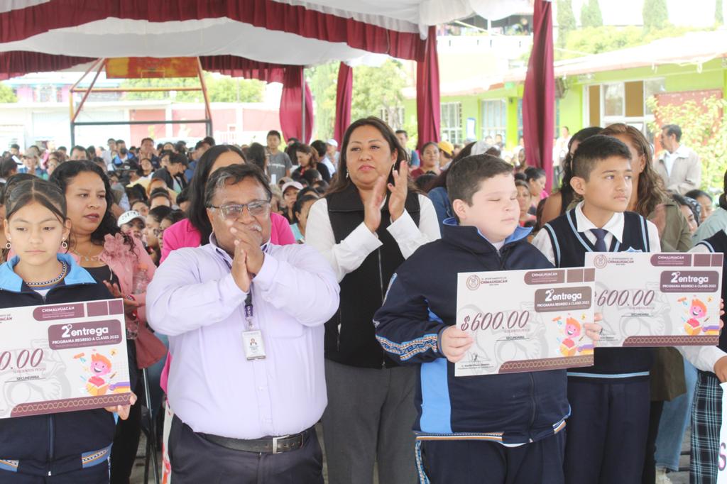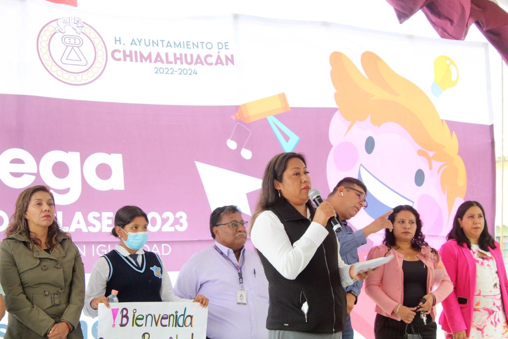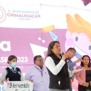 Al recibir a nombre del H. Ayuntamiento de Chimalhuacán el reconocimiento de autoridades educativas, alumnos y padres de familia por la instrumentación del Programa “Regreso a Clases, Transformando la Educación con Igualdad 2023” con presupuesto cien por ciento del municipio, la Presidenta Xóchitl Flores Jiménez anunció más recursos para 2024 en apoyo a la niñez y la juventud.