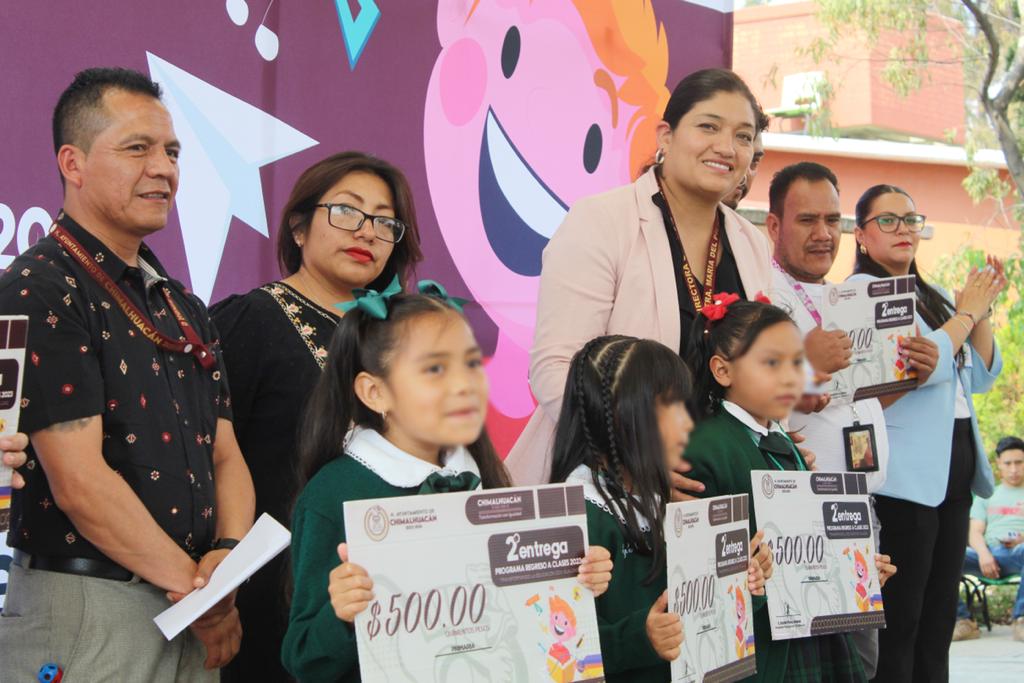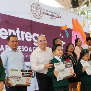 Fue la secretaria del Ayuntamiento, Patricia Josefina Jiménez Hernández, en representación de la Alaldesa Xóchitl Flores Jiménez, la encargada de hacer entrega de este apoyo económico a los alumnos y padres de familia, así como de anunciar la construcción de una techumbre para que los estudiantes lleven a cabo sus actividades al aire libre protegidos del clima.