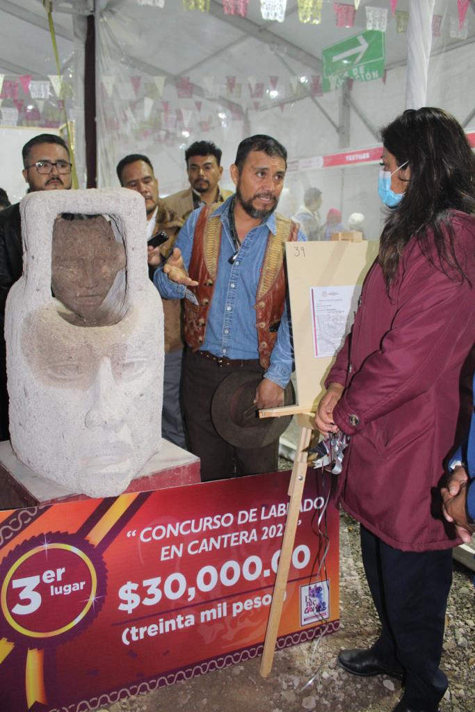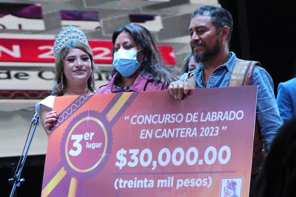 A nombre de Chimalhuacán y su H. Ayuntamiento, la Presidenta Municipal, Xóchitl Flores Jiménez, entregó reconocimientos y estímulos económicos a los ganadores del Concurso de Labrado en Cantera: Primer lugar, Saúl Velasco Velázquez con la obra “Escultor”; segundo lugar, Juan Manuel Buendía García con “Pináculo”; y tercer lugar, Joel Arrieta Arrieta con “Sanando mi niño interior”, en el marco de la Feria Metropolitana Chimalhuacán 2023 (Femechi), realizada por el 181 aniversario de la fundación de nuestro municipio, y que hoy concluyó.