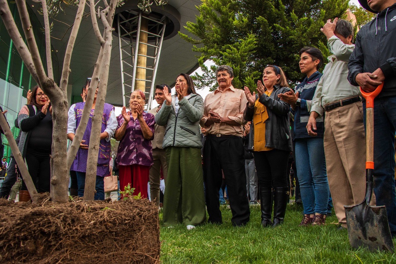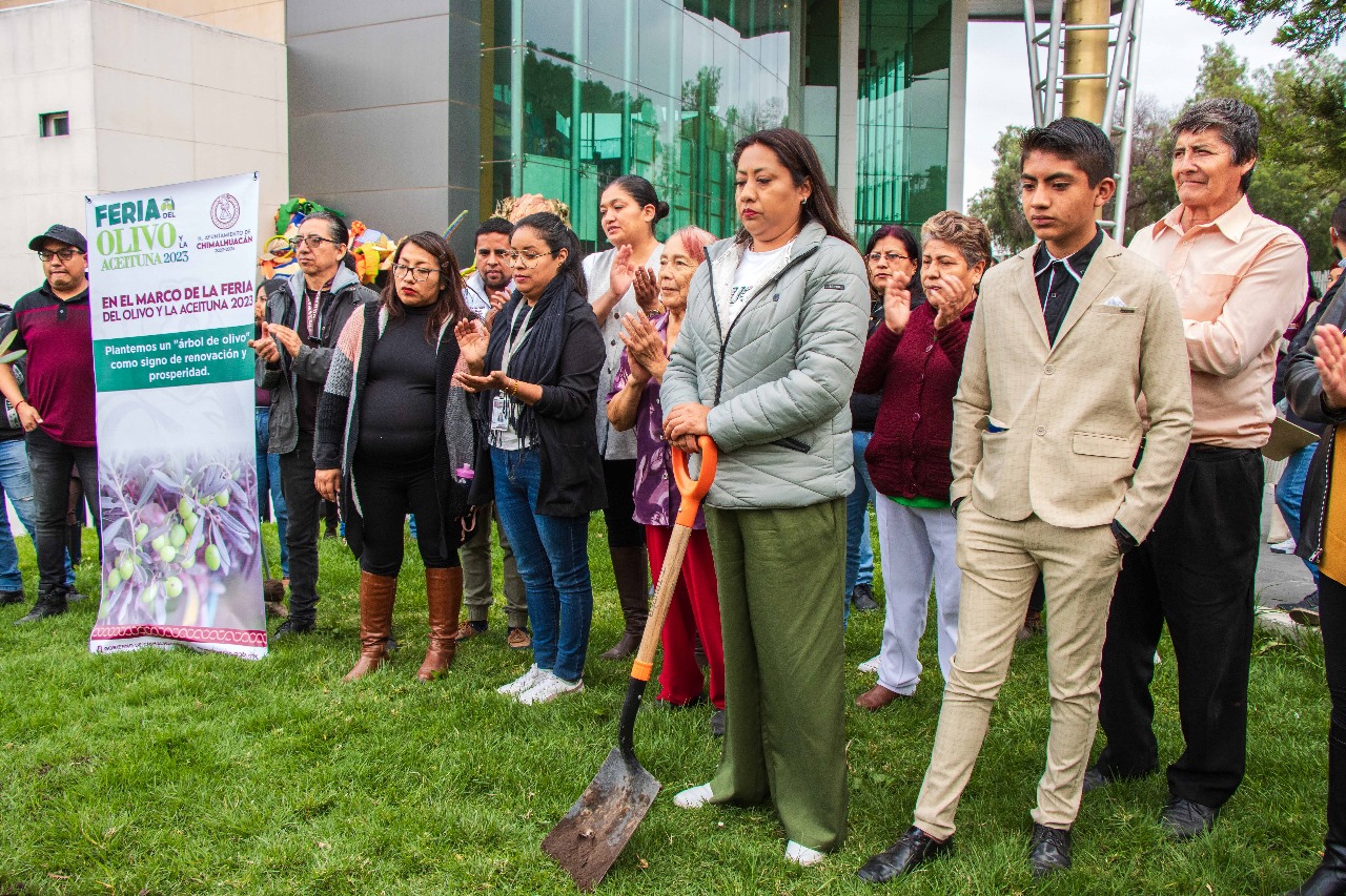 A la plantación del árbol del olivo, que fue donado por la familia Buendía Peralta y colocado en el jardín perteneciente al Complejo Cultural “Acolmiztli Nezahualcóyotl”, se dieron cita cuatro generaciones que han cultivado el olivo a lo largo del tiempo en Chimalhuacán, como los ciudadanos Cruz Buendía Peralta, Rosario Leopoldo Buendía, Guillermina González Buendía, así como Josué Leopoldo Buendía.