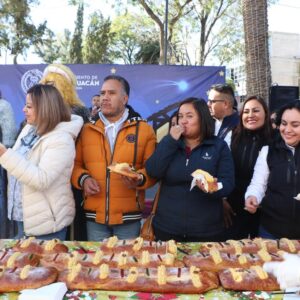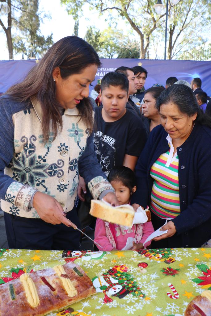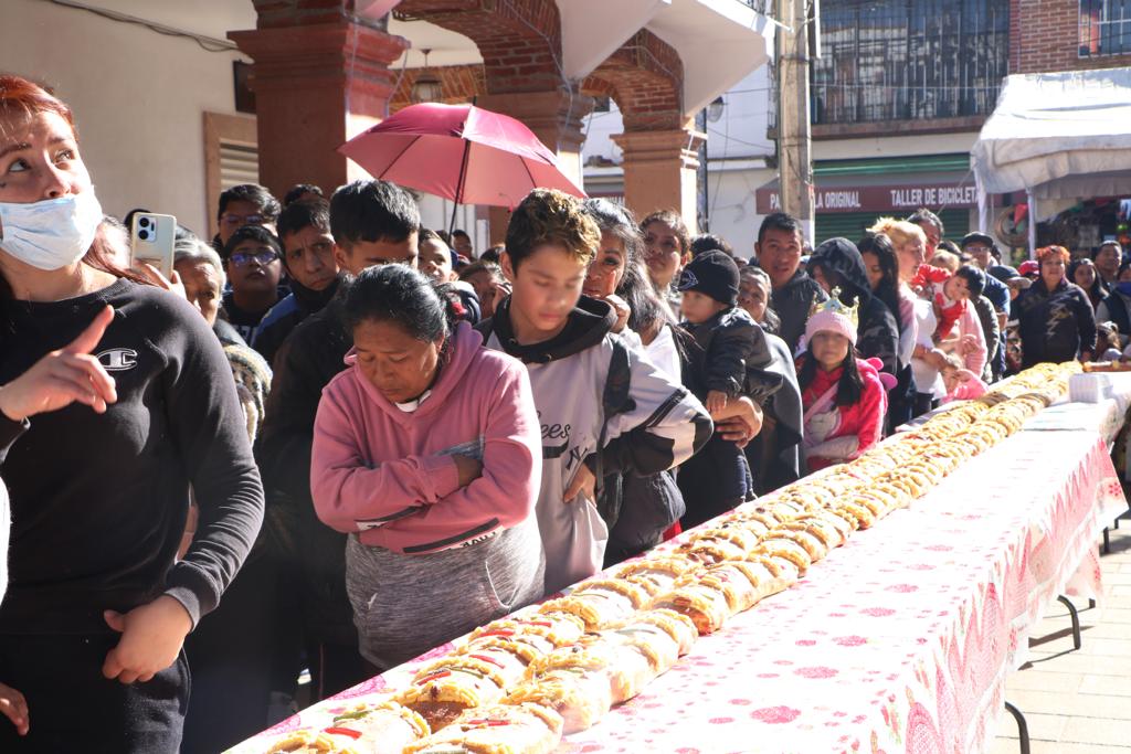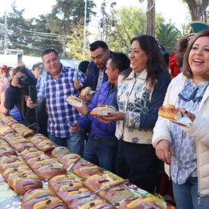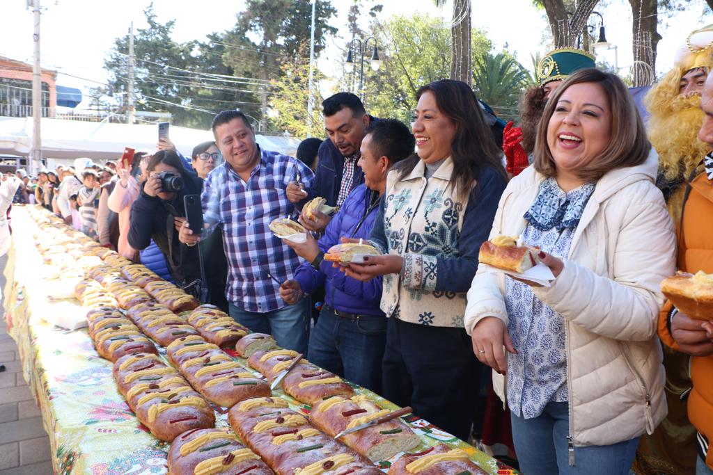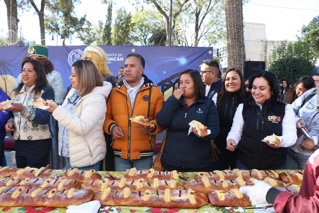 Con motivo de Día de los Reyes Magos, la Presidenta Municipal de Chimalhuacán, Xóchitl Flores Jiménez, llevó a cabo la tradicional partida de Rosca de Reyes ante cientos y cientos de personas que se dieron cita en la Plaza Zaragoza de la Cabecera Municipal y pudieron disfrutar de este delicioso pan y de atole caliente para aminorar el frío matinal invernal.