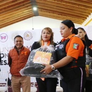 “Seguiremos invirtiendo en su capacitación y equipamiento, de modo que tengan las herramientas necesarias para atender a las víctimas de violencia, tal como lo hemos hecho para quienes laboran en la Dirección de la Mujer y en la Dirección General de Seguridad Ciudadana y Tránsito Municipal”, expresó la Presidenta Flores Jiménez minutos antes de entregar uniformes a elementos de las áreas mencionadas.