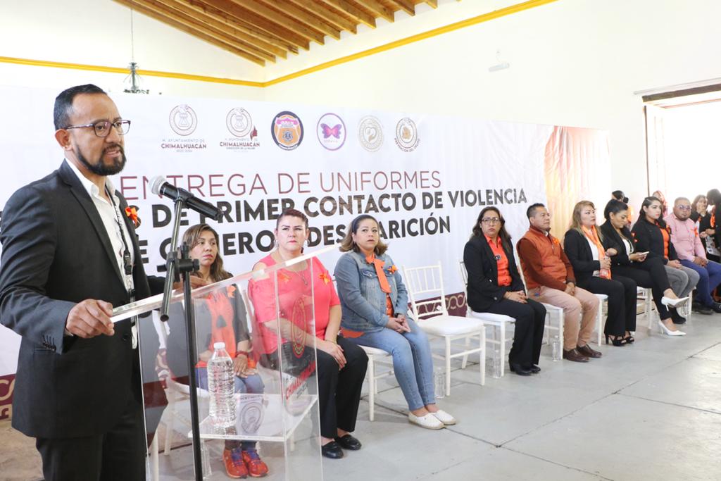 “Seguiremos invirtiendo en su capacitación y equipamiento, de modo que tengan las herramientas necesarias para atender a las víctimas de violencia, tal como lo hemos hecho para quienes laboran en la Dirección de la Mujer y en la Dirección General de Seguridad Ciudadana y Tránsito Municipal”, expresó la Presidenta Flores Jiménez minutos antes de entregar uniformes a elementos de las áreas mencionadas.