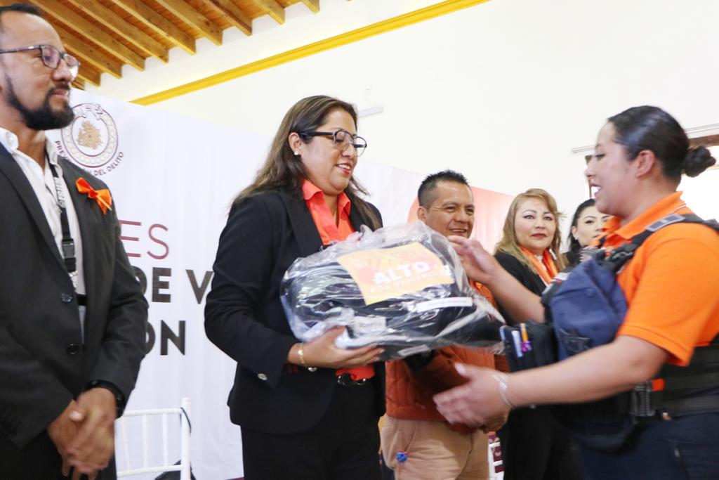 El reconocimiento le fue entregado durante el acto de dotación de uniformes a elementos de Áreas de Primer Contacto de Violencia de Género y Desaparición que encabezó la propia la Presidenta Flores Jiménez en el Museo Chimaltonalli, en el marco del Día Naranja. A todas y todos ellos les valoró su cada vez más eficaz atención en estos casos.