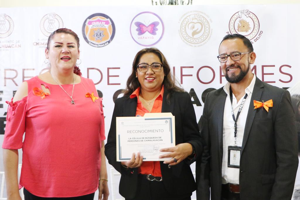 El reconocimiento al Gobierno de Chimalhuacán lo transmitió el Coordinador de Ministerios Públicos de la Fiscalía Especializada en Desaparición Forzada Cometida por Particulares, Paulino Cortina Galindo, en representación de Dilcya Samantha García Espinoza de los Monteros, Fiscal Central Para la Atención de Delitos Vinculados a la Violencia de Género, y de Rogelio Guillermo Rueda, Fiscal Especial para la Investigación y Persecución de Delitos en Materia de Desaparición Forzada de Personas y la Desaparición Cometida por Particulares de la FGJEM.