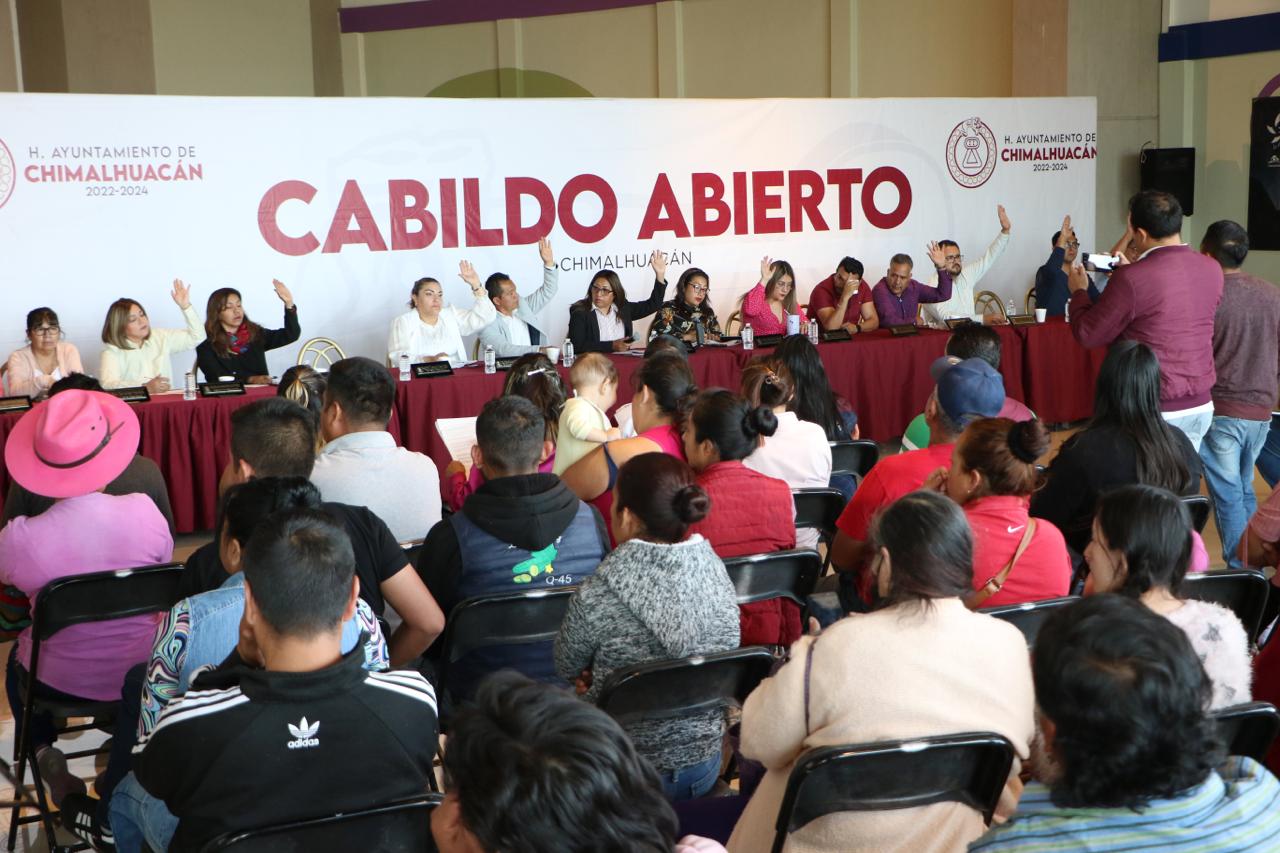 Por instrucciones de la Presidenta Municipal, Xóchitl Flores Jiménez, responsables de diversas áreas de su administración atendieron y dieron respuesta a solicitudes que vecinas y vecinos de diferentes barrios y colonias plantearon durante el Décimo Primer Cabildo Abierto, realizado hoy en la Parte Alta del Barrio Xochiaca, en el Cerro del Chimalhuache.