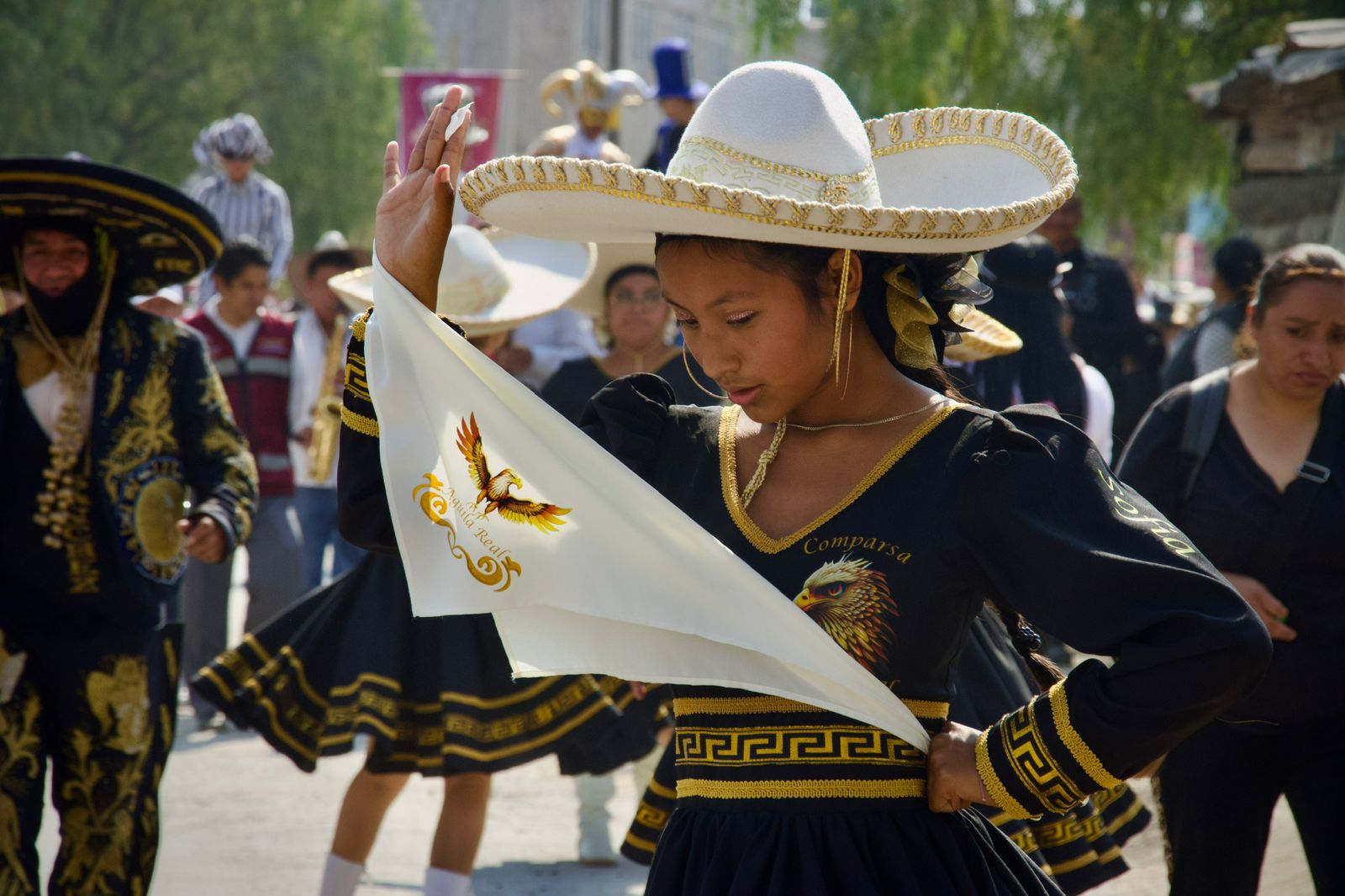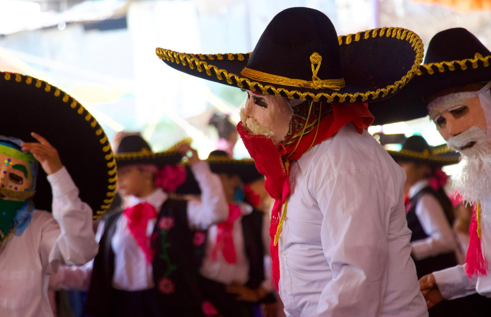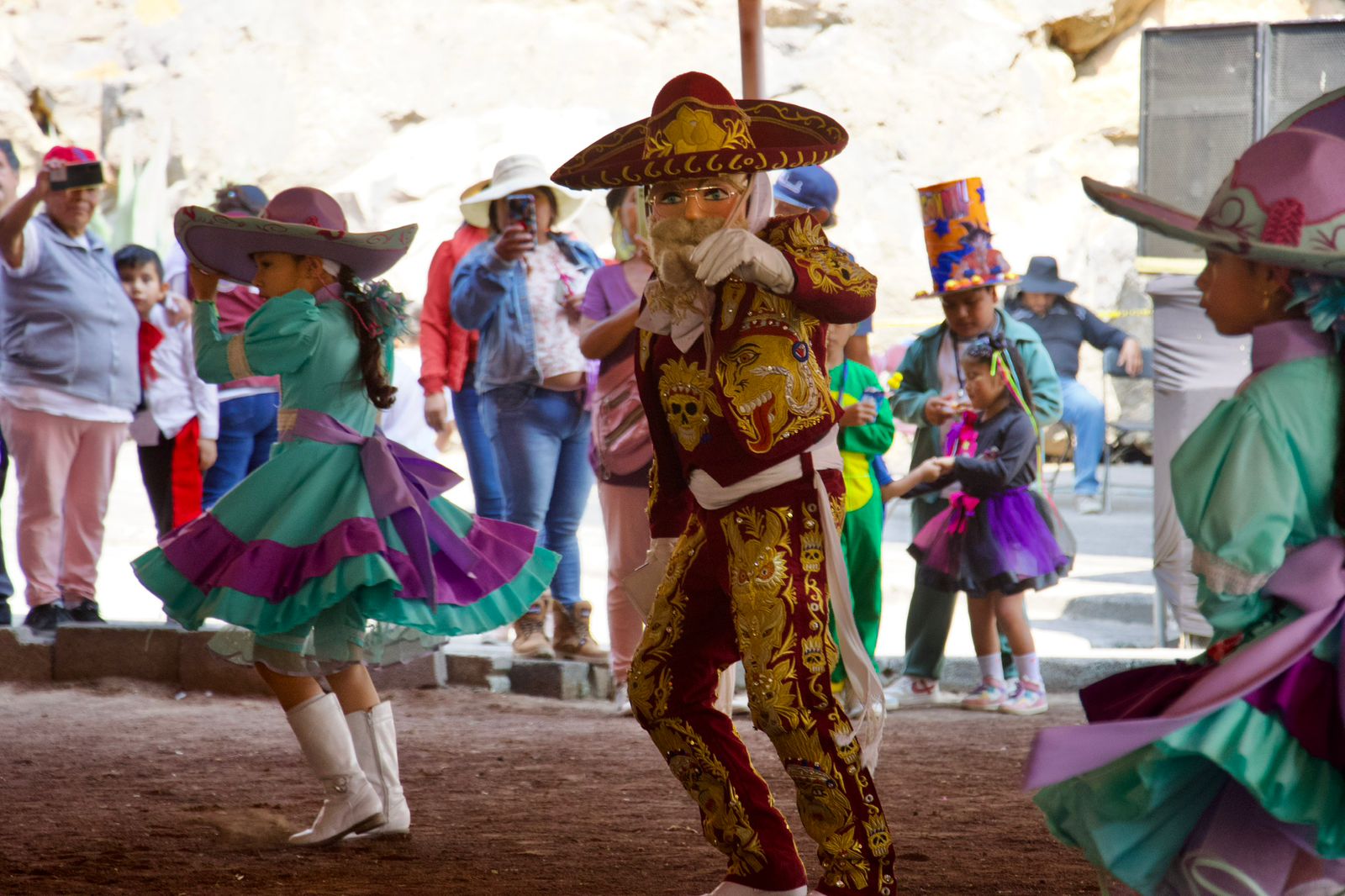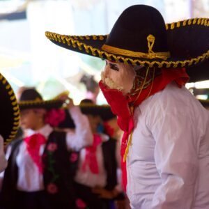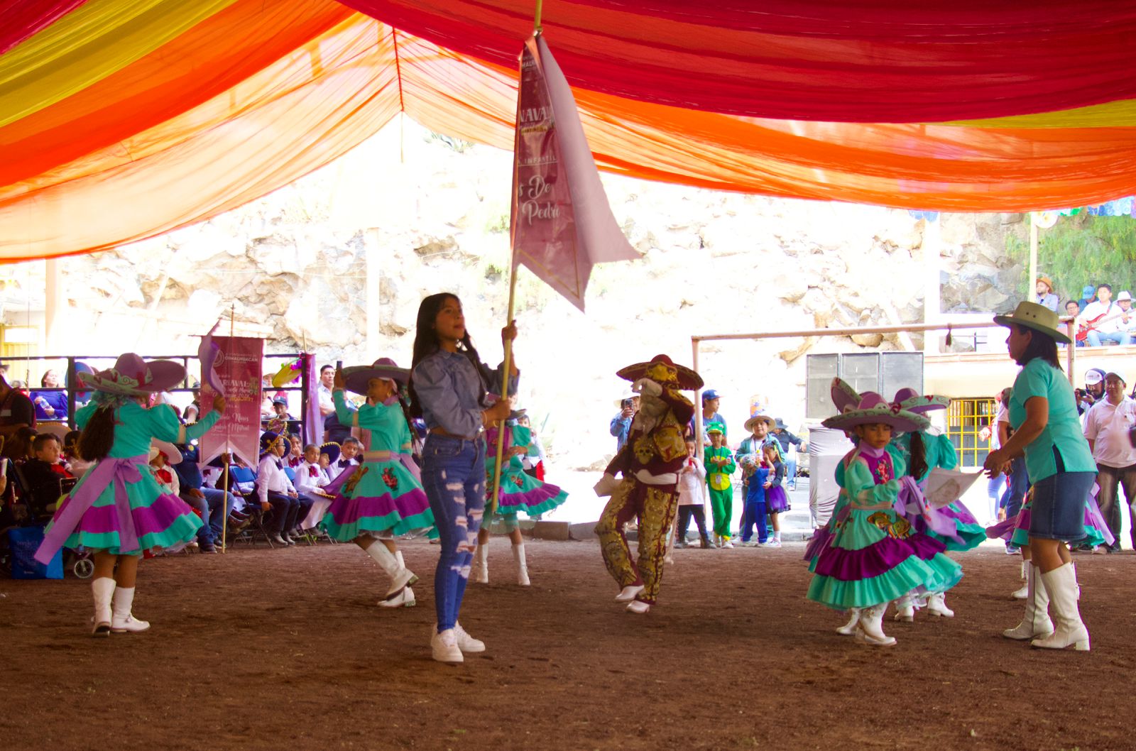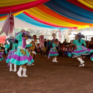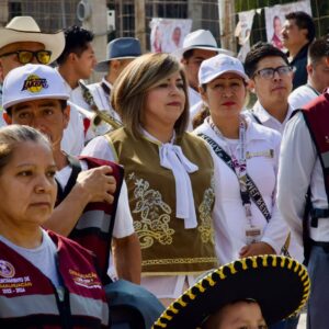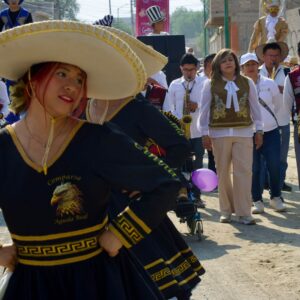 Las comparsas infantiles y de estudiantes bailaron al ritmo de virginias y pasos dobles temas como “Las de San Pedro”, “Inspiración de mi alma”, “Vestida de color de rosa”, “El alacrán”, “El zapatito”, entre otras, compuestas por músicos y orquestas de Chimalhuacán.