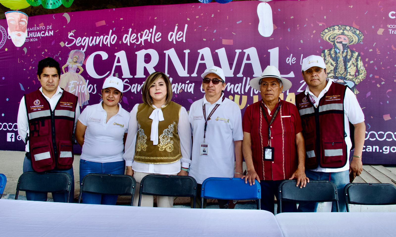 La Presidenta Municipal por Ministerio de Ley expresó el orgullo de festejar el Segundo Desfile de Carnaval de los Ejidos de Santa María y dijo a los asistentes que esta fiesta tradicional de Chimalhuacán es de toda la población. Asimismo, celebró que alumnos de la Escuela Primaria “Gabriela Mistral” hayan elaborado sus propias máscaras de carnaval con ayuda de sus padres y profesores, pues es una manera de adoptar y fomentar la cultura y tradiciones del territorio.