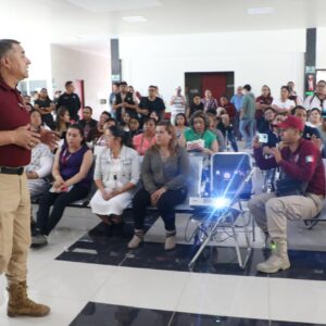 En su Edificio Administrativo denominado “Heberto Castillo”, ubicado en la esquina de las Avenidas La Paz y Las Flores, colonia Santo Domingo, el H. Ayuntamiento realizó este taller de capacitación a cargo de expertos y autoridades de las Direcciones de Salud y de Protección Civil y Bomberos.