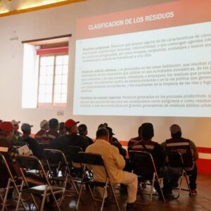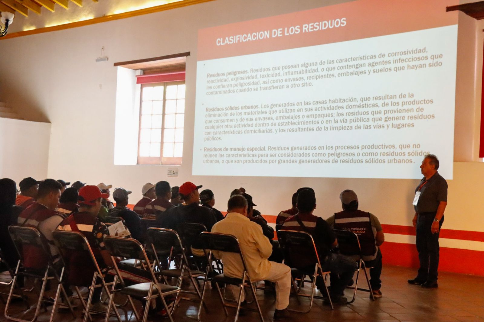 Con el objetivo de proteger la salud de sus trabajadores de limpia y de sus familias, así como la salud de la población en general, el medio ambiente, la economía familiar y las finanzas públicas, los Gobiernos de Chimalhuacán y del Estado de México impartieron la plática de concientización y capacitación sobre Manejo y Disposición de Residuos Sólidos a dichos servidores públicos.