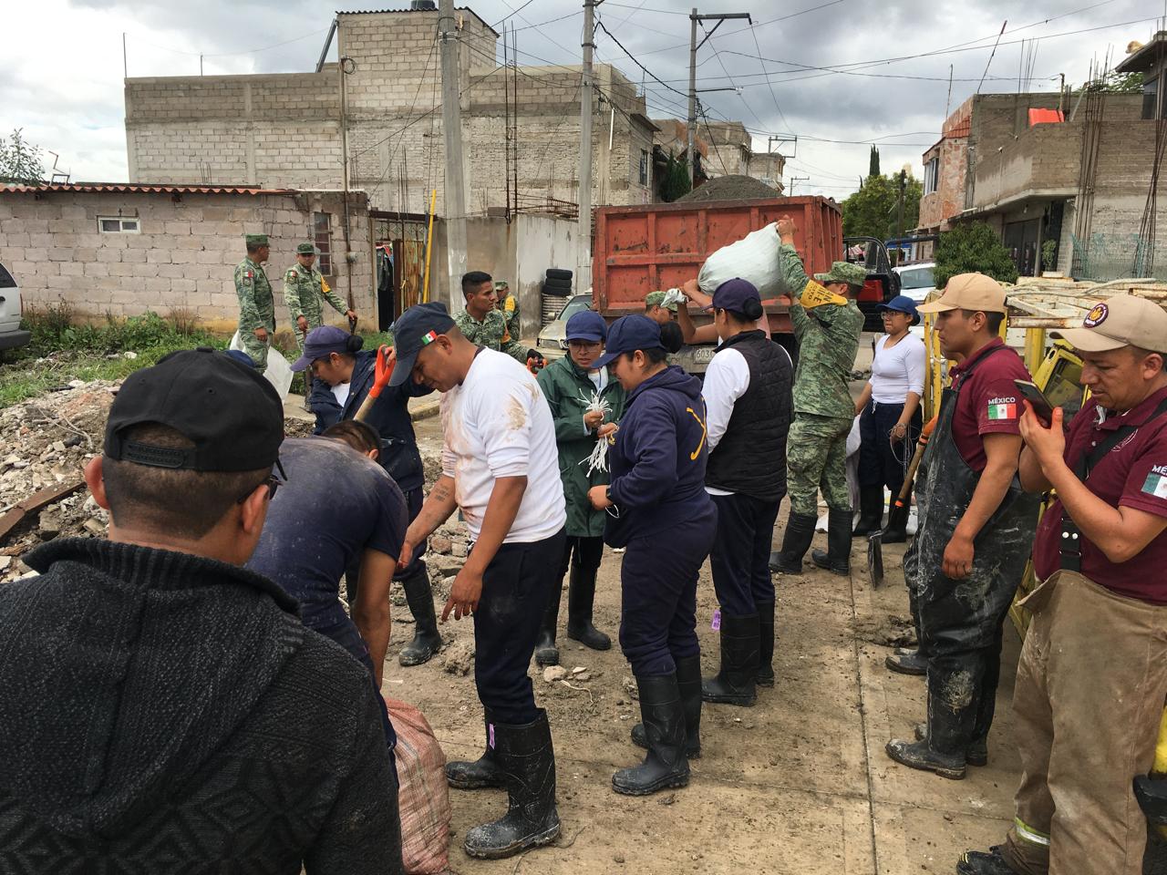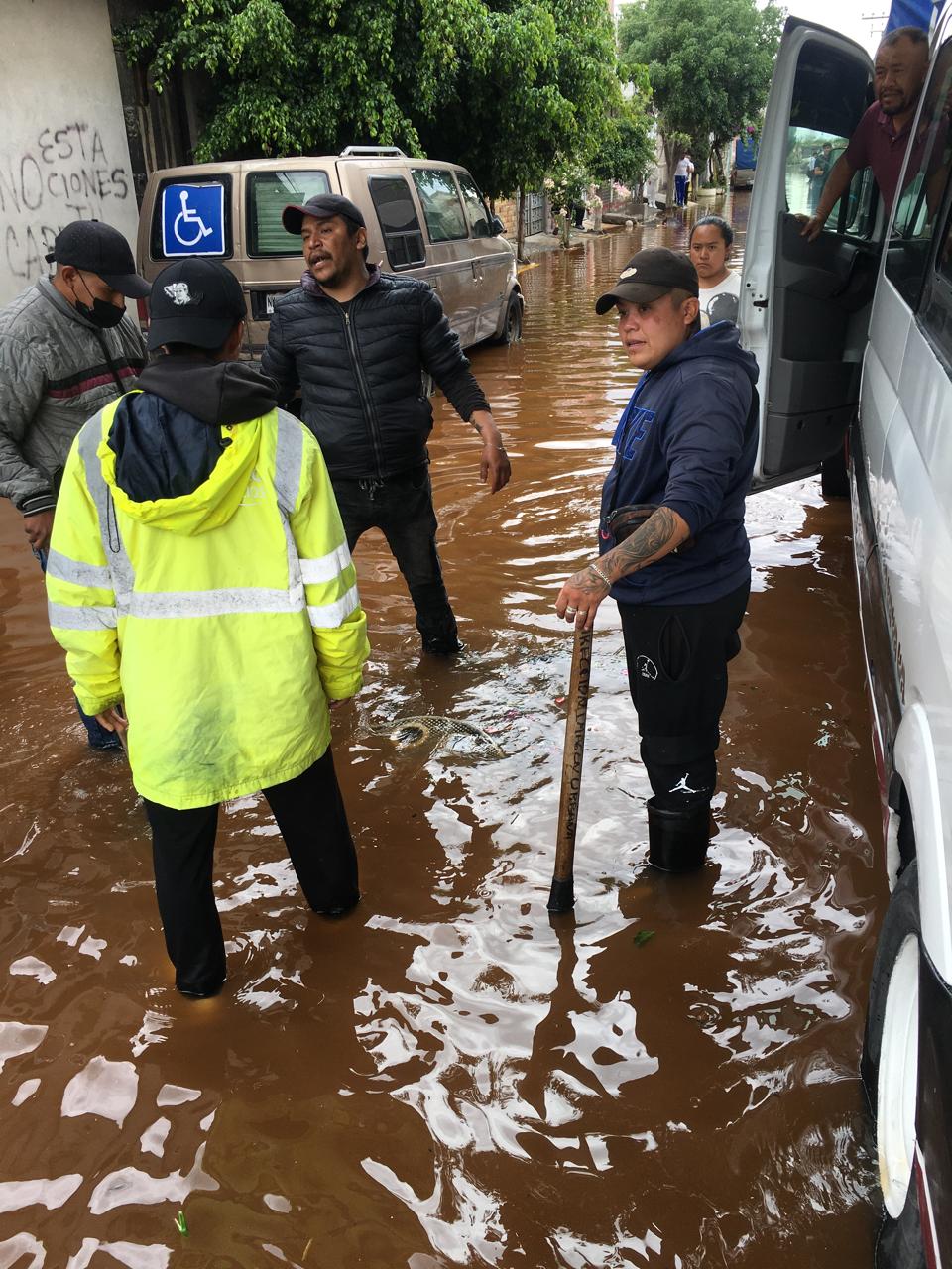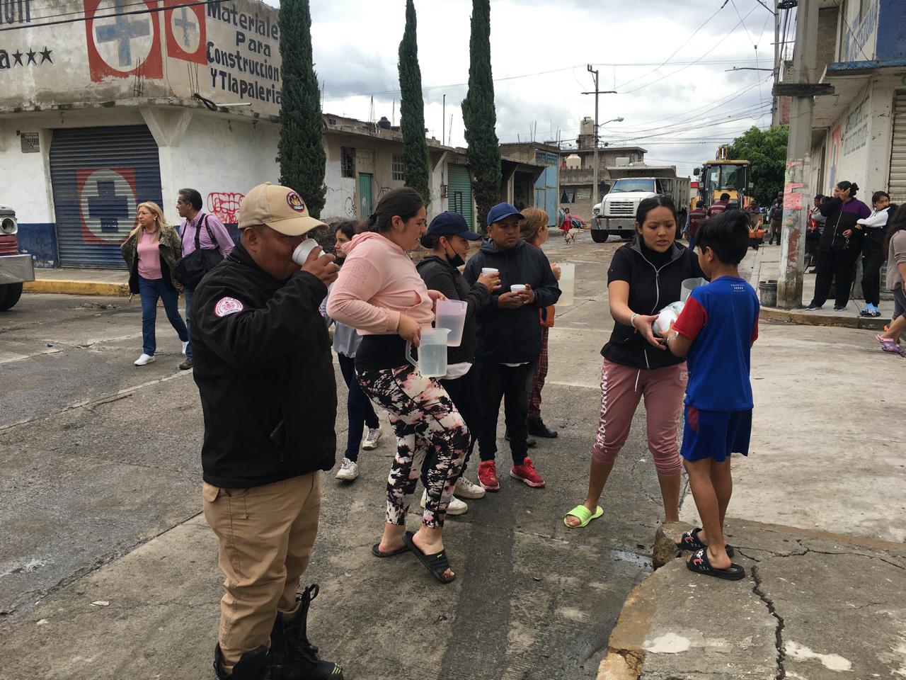 Personal de las direcciones de Protección Civil y Bomberos, de Desarrollo Urbano y de Gobernación, encabezados por la Secretaría del Ayuntamiento, así como la CAEM, atendieron la inundación, primero, toponeando el tubo con una barricada de costales y, después lavando las calles. Se invitó a las familias afectadas a resguardarse en el Centro de Desarrollo Comunitario de San Agustín, pero rechazaron la propuesta.