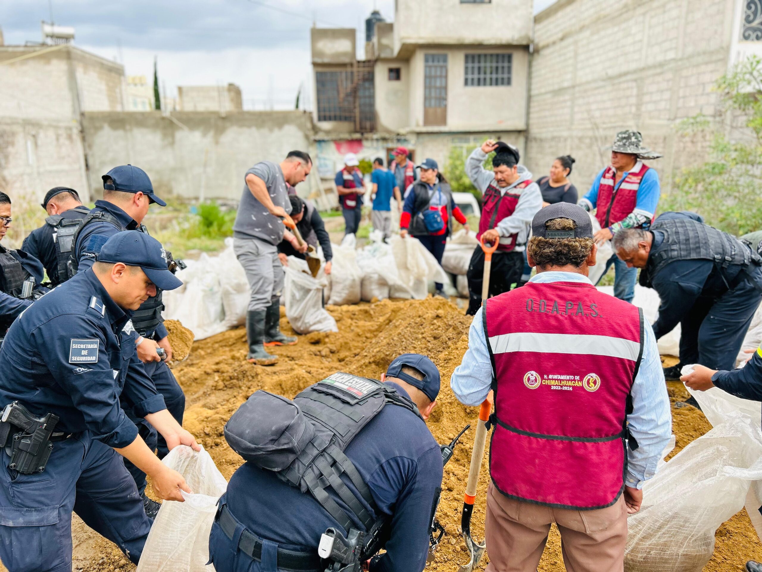 En los trabajos para el taponamiento de la fractura del Dren Chimalhuacán II participan la Coordinación General de Protección Civil y de Seguridad Ciudadana del Estado de México, la Secretaría de la Defensa Nacional y las áreas operativas del Comité Municipal de Emergencias, como las direcciones de Protección Civil y Bomberos, Seguridad Ciudadana y Tránsito Municipal, Obras Públicas, Desarrollo Urbano, Servicios Públicos, Salud y Comunicación Social, así como el Organismo Descentralizado de Agua Potable, Alcantarillado y Saneamiento (ODAPAS) y el Sistema Municipal para el Desarrollo Integral de la Familia.