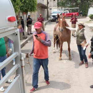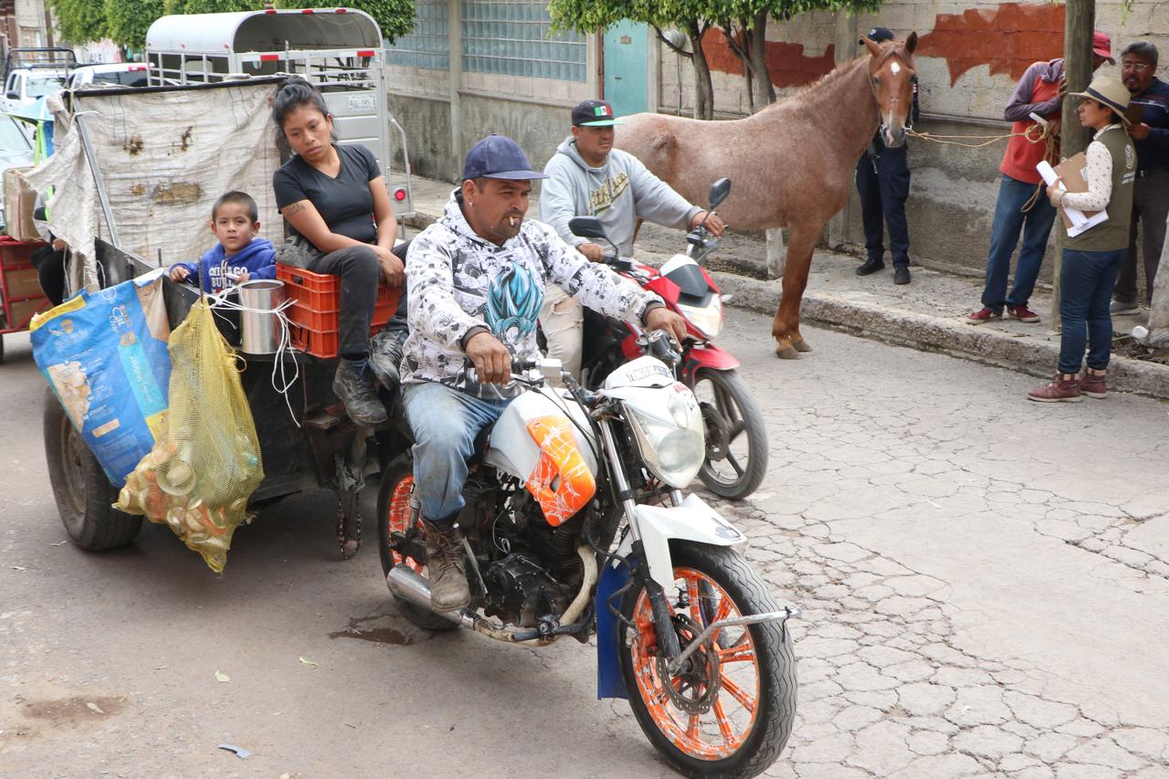 Por ello, una vez transcurrido el tiempo pertinente para que el presunto dueño del tiradero clandestino retirara la basura de los otros domicilios afectados, la autoridad local actuó ante su incumplimiento y, además, rescató un caballo de tiro en ese predio, al cual se sumó otro de un predio vecino que también era ocupado para la recolecta de residuos sólidos, y por los que ya se habían presentado denuncias vecinales porque son explotados y maltratados.
