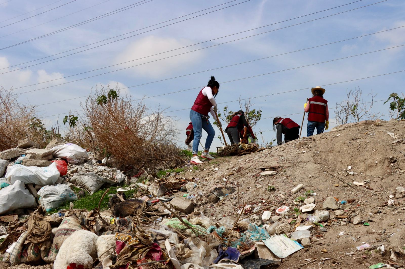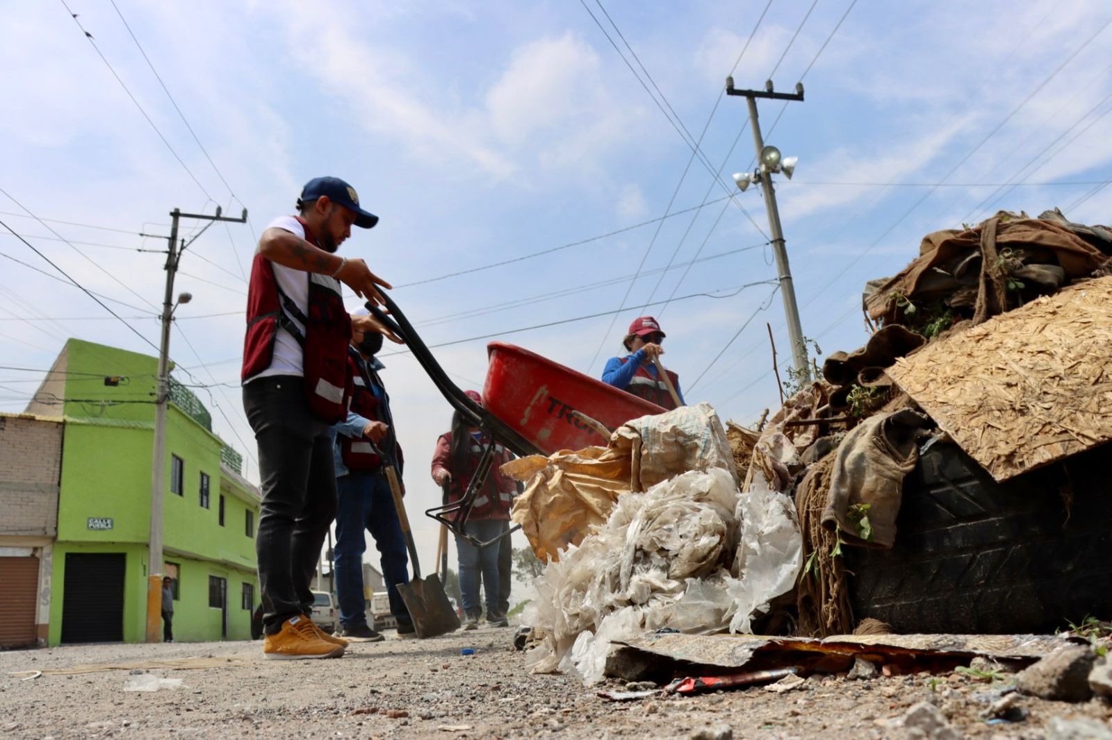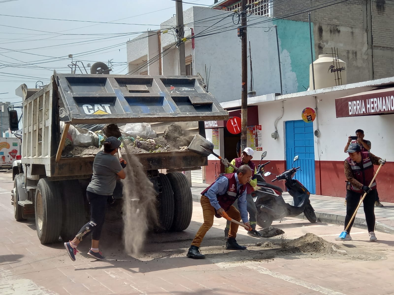Con la ayuda de maquinaria pesada como camiones de volteo, recolectores de basura, una retroexcavadora, un Bob-Cat, así como palas, picos, machetes, rastrillos, arañas y carretillas, los servidores públicos retiraron decenas de toneladas de residuos urbanos en beneficio de la población.