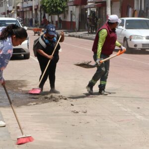 En la Jornada de Limpieza de la av. Nezahualcóyotl de la Cabecera Municipal participaron una brigada de la Dirección de Servicios Públicos y vecinos para levantar la tierra y escombros que se deslizaron por esta vialidad con las recientes y fuertes lluvias.