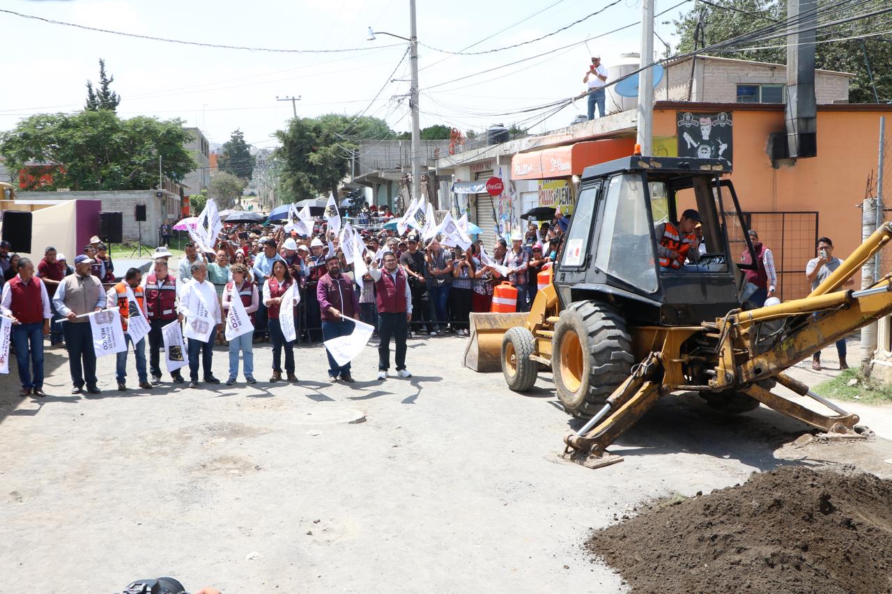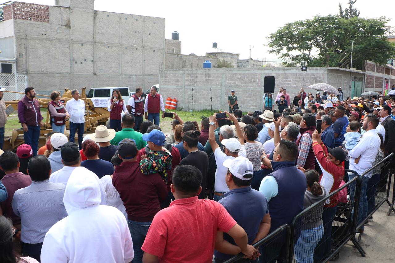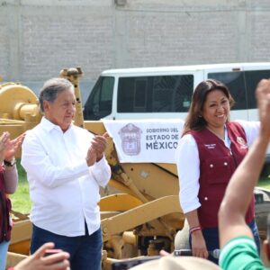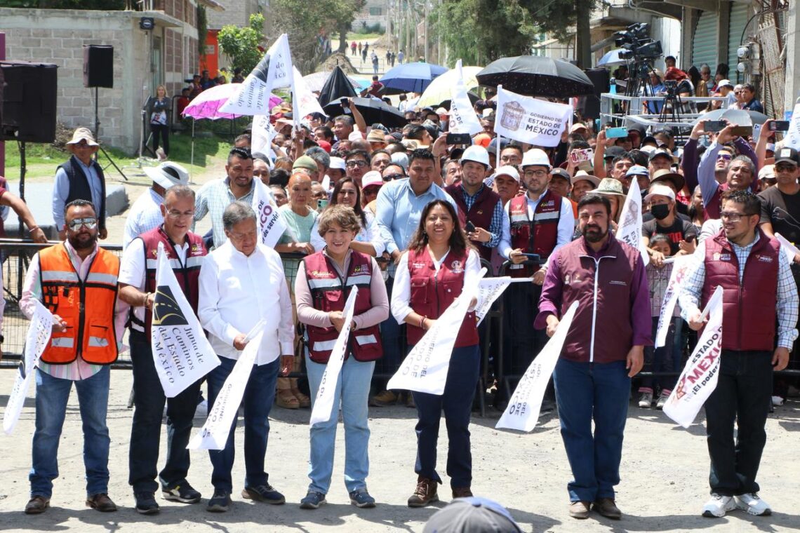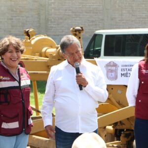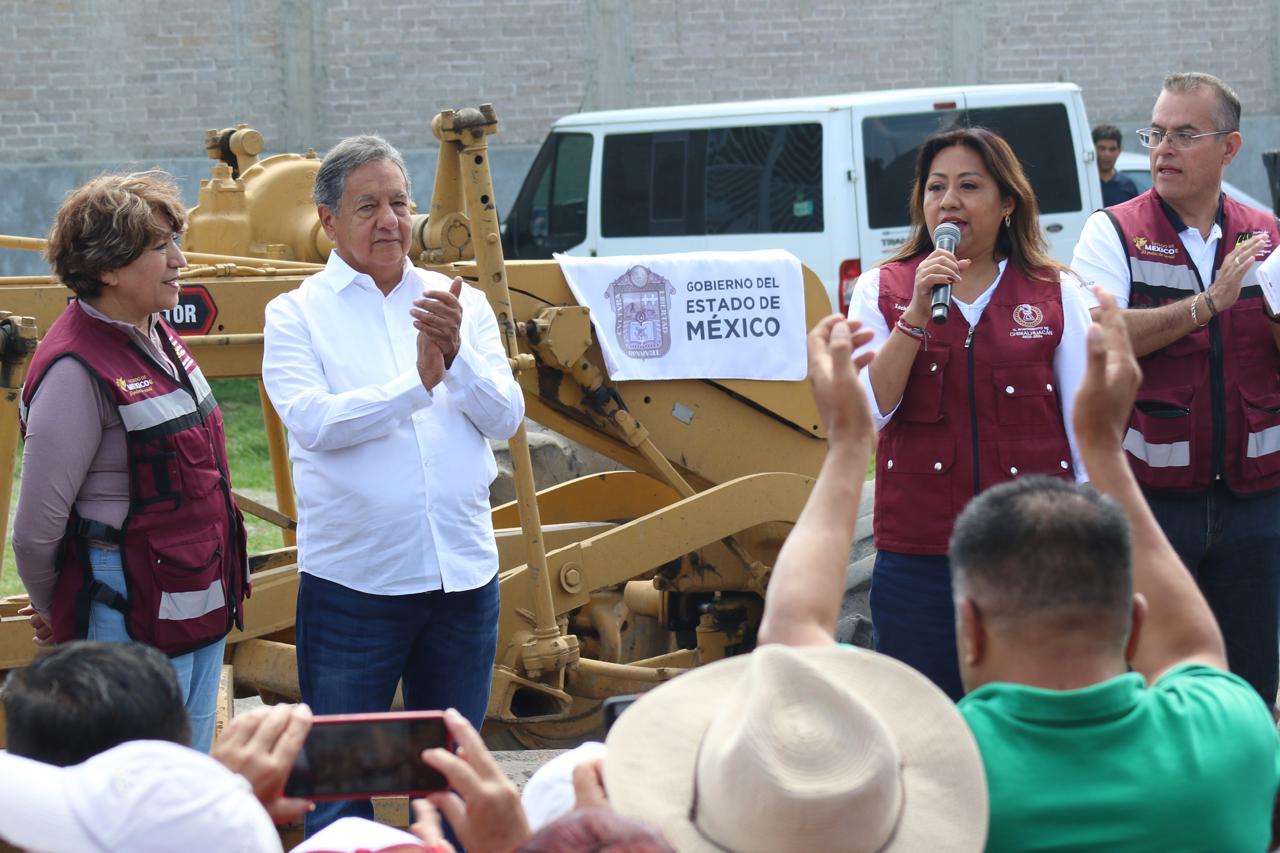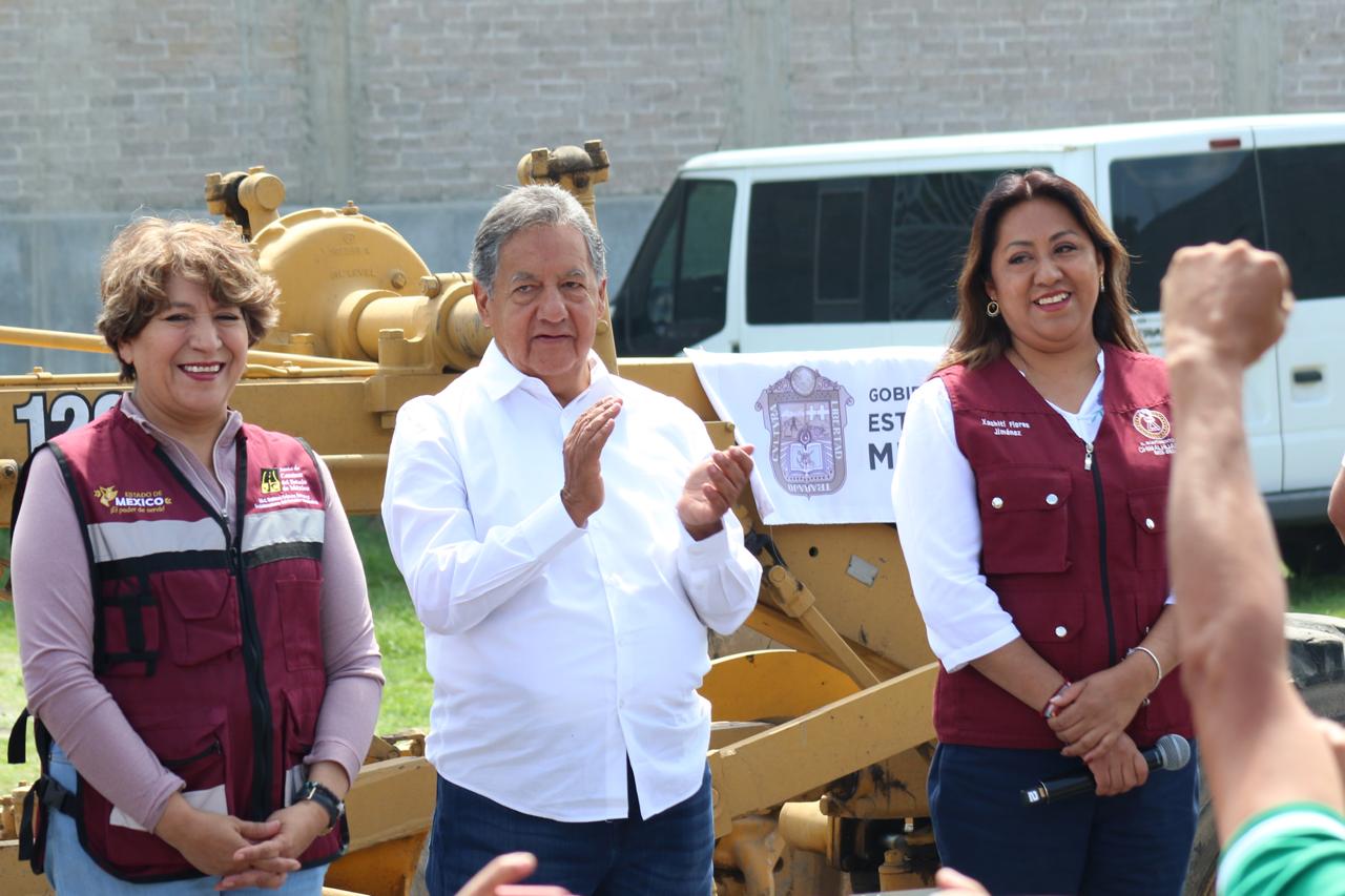 La Gobernadora del Estado de México, la maestra Delfina Gómez Álvarez, acompañada de la Presidenta Municipal de Chimalhuacán, Xóchitl Flores Jiménez, y de otros servidores públicos de la entidad, dio el banderazo de inicio de la obra de construcción de pavimento hidráulico, guarniciones y banquetas de la calle “De la Hacienda” en la colonia Loma de Buenavista, en Ejidos de Santa María. Y anunció que el Gobierno del Estado realizará dos obras más en el municipio: el mejoramiento del Deportivo Herreros, ubicado en el barrio Herreros, y la construcción del puente “Los Rosales” en el Canal Río de la Compañía, a la altura de las Avenidas José López Portillo y Prolongación Chimalhuacán, el cual conecta con Nezahualcóyotl.